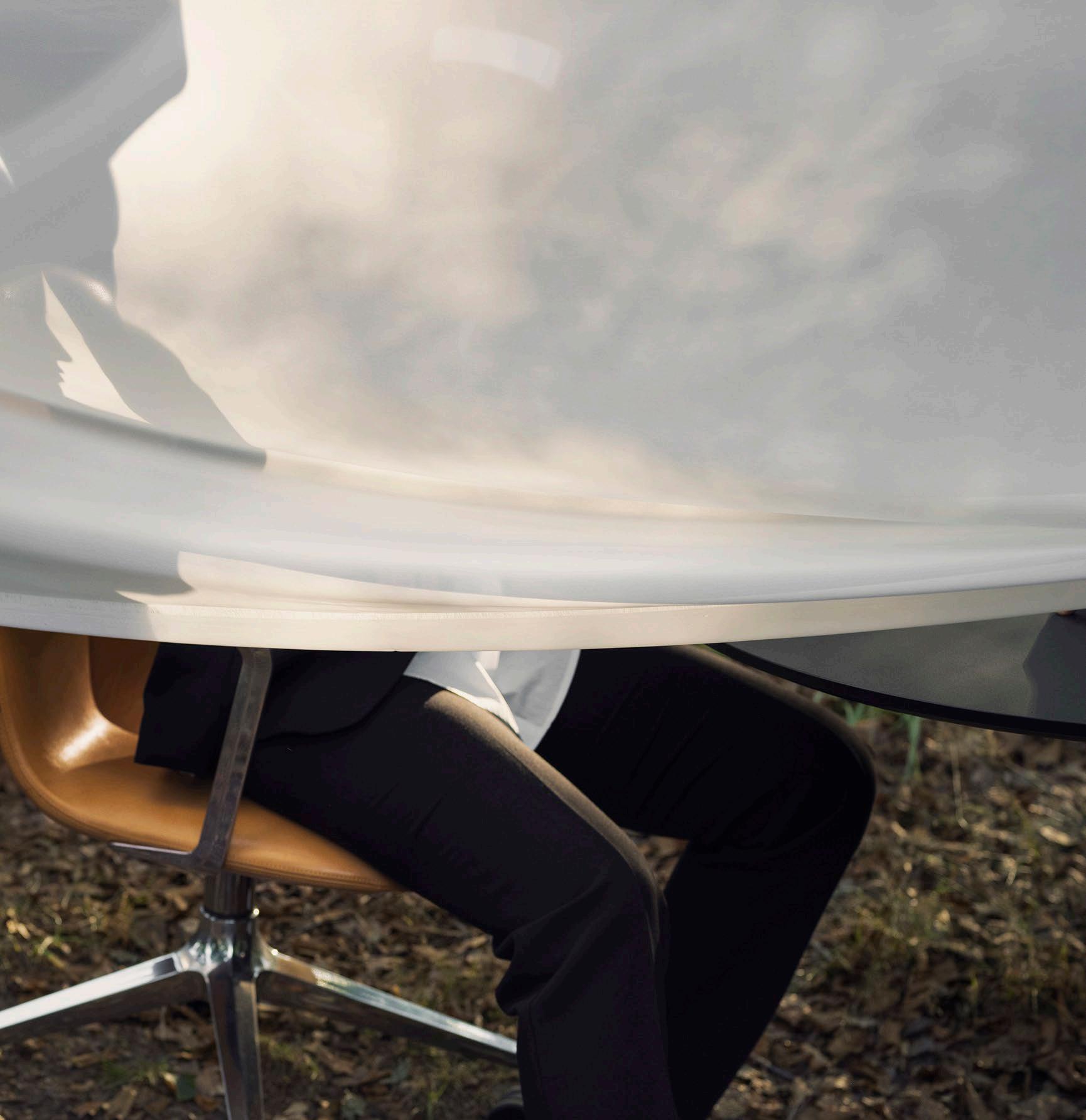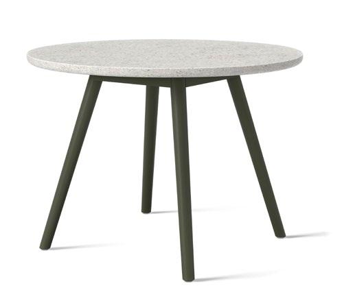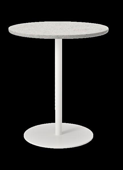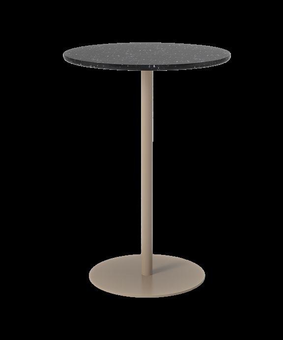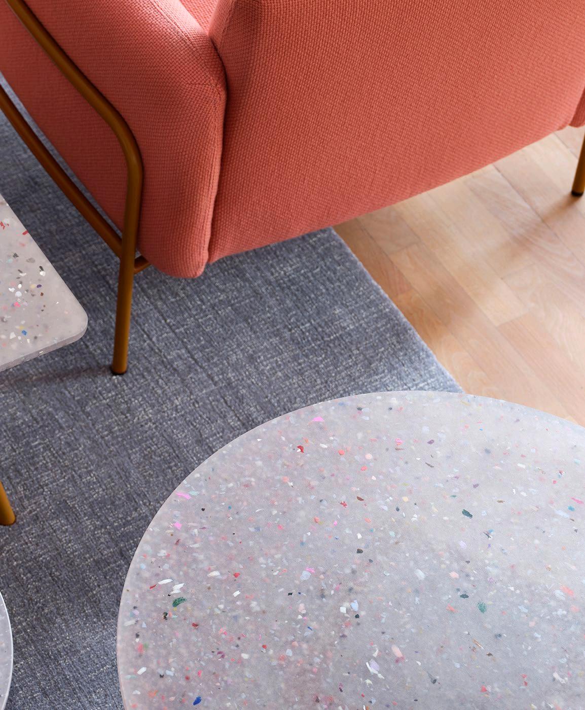 Tinnef is no ordinary table. It has always been a shapeshifter, designed to evolve with its surroundings and users. The series has grown with round café tables in three different heights, ideal for casual and relaxed gatherings. Each table features a unique tabletop made of recycled plastic waste, carrying on the conscious legacy of designer Charlotte von der Lancken.