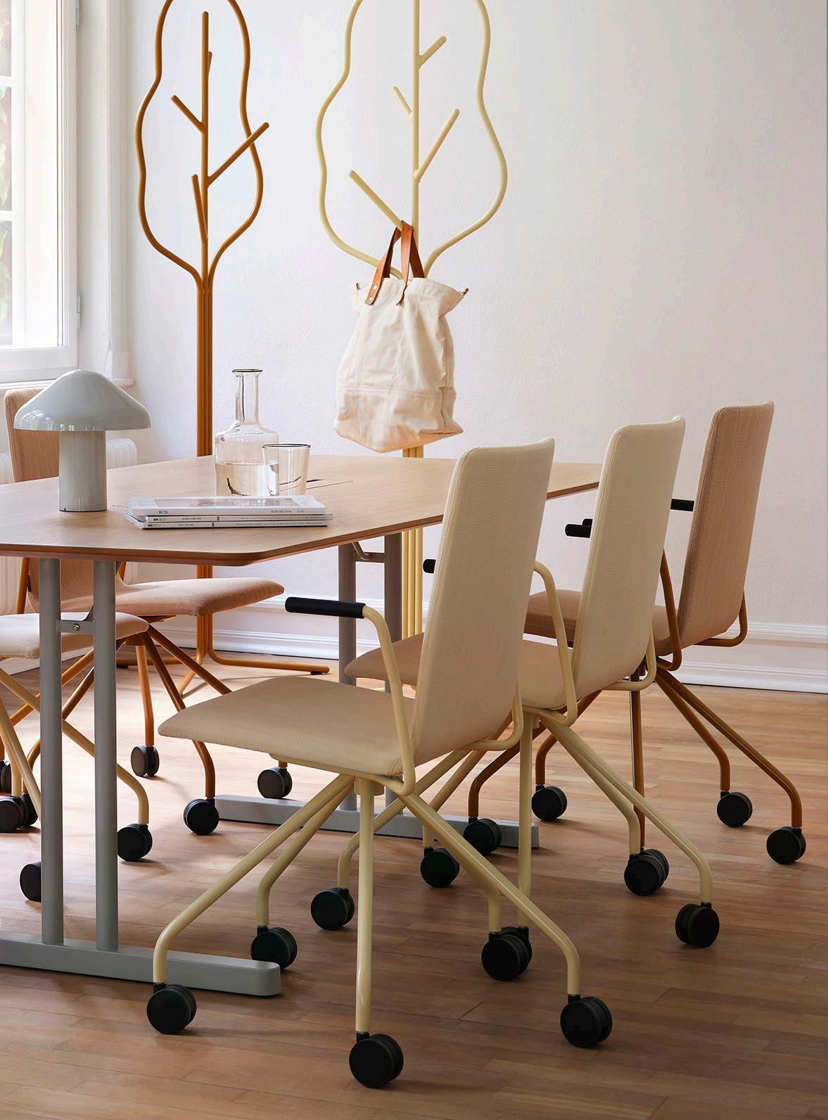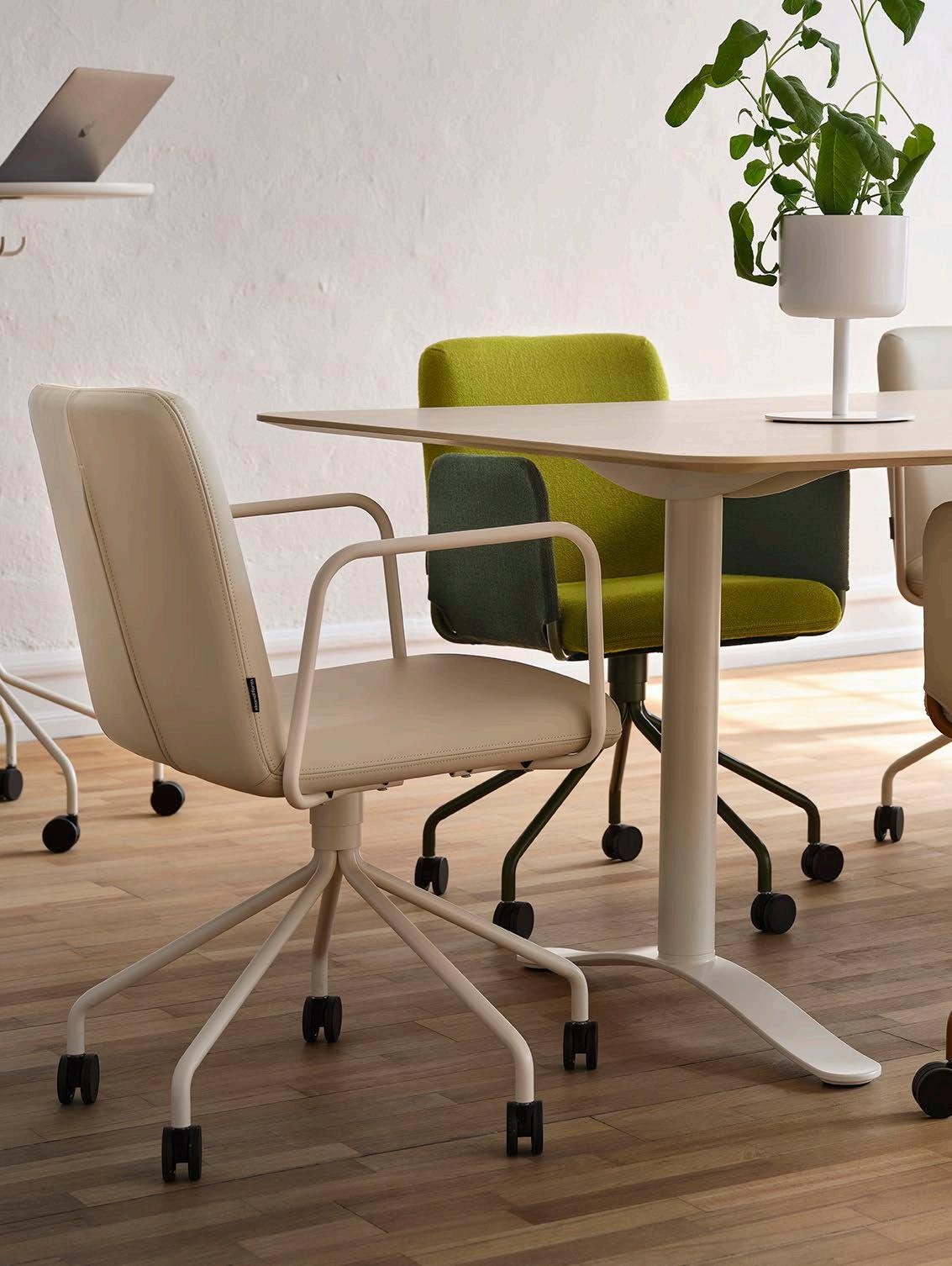Skandiform’s autumn collection introduces new variants of Bolero, Bombito, and Tinnef – a trio that makes sense, balancing movement and meetings with relaxation and work. Bolero is now available as both chair and armchair, complete with legs or a swivelling base on casters, adding flexibility in work and lounge settings without compromising the design and comfort that define the series. Bombito, celebrating 20 years of timeless design, comes with casters, bringing mobility to meeting spaces and encouraging a more dynamic way of sitting. Tinnef completes the trio, expanding with square coffee and café tables featuring tabletops made from recycled plastic waste – each one unique, just like the spaces they belong in.