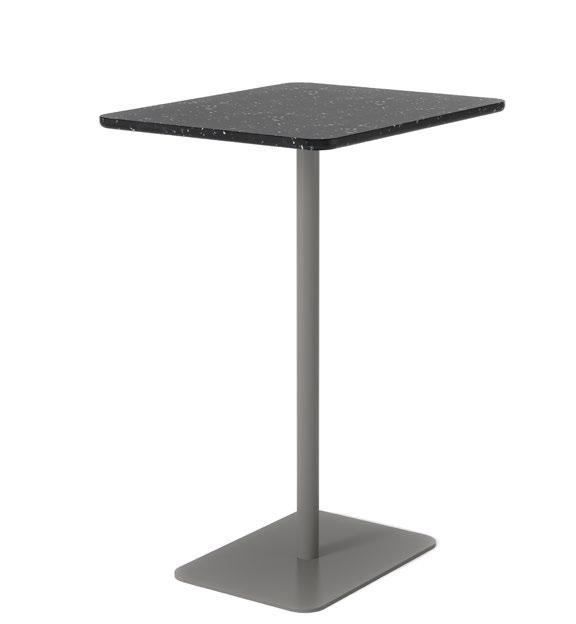 Table available in various heights, shapes and sizes that can be used individually or as part of a set. Table top in 100% recycled plastic material or in oak / white pigmented ash.