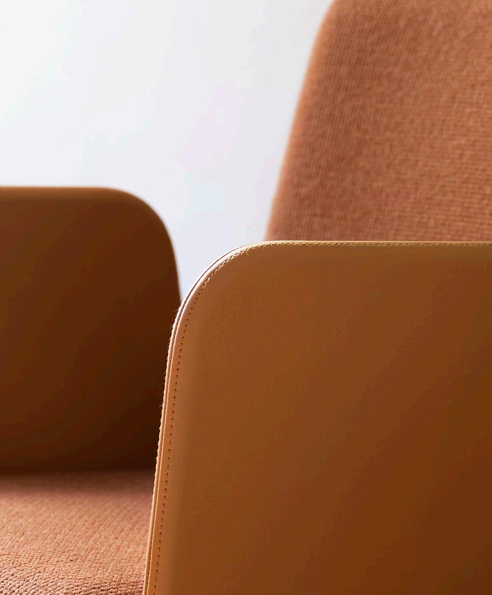 Inspired by the layered structure of tailored garments, Bolero embraces a soft form that evokes both elegance and ease. It makes you feel at home. A standout feature is the upholstered frame, shaped like a tailored jacket, paired with a mix of materials. The series is available in a variety of configurations to suit different settings.