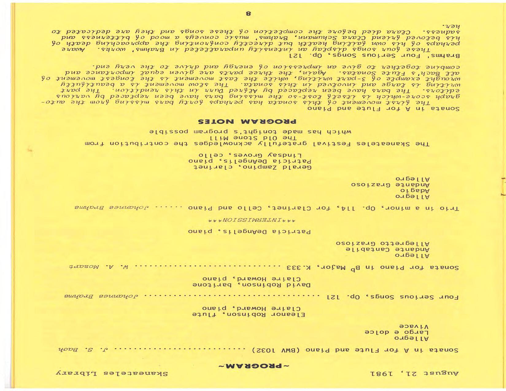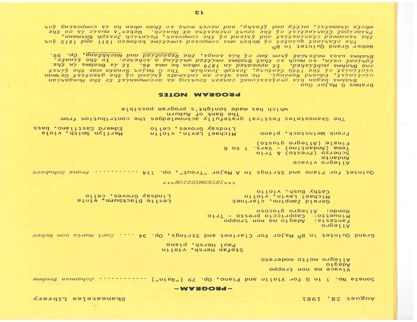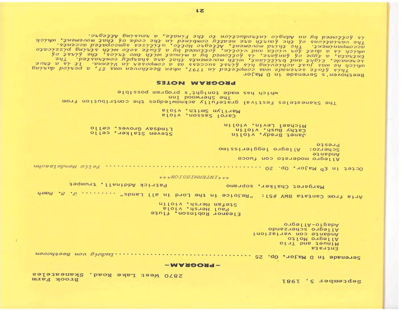 The season expands to three weeks of concerts at Library Hall. Pianist/violinist Paul Hersh is the artist in residence. His debut is in Beethoven’s Diabelli Variations. He performs with his son Stefan Hersh on violin in Brahms’ Sonata No. 1 in G Minor and plays piano in Bach’s Brandenburg Concerto No. 5 at Brook Farm. Frank Weinstock is the pianist in Schubert’s Trout Quintet for piano and strings: Michael Levin, violin; Marilyn Smith, viola; Lindsay Groves, cello; and Edward Castilano, bass.