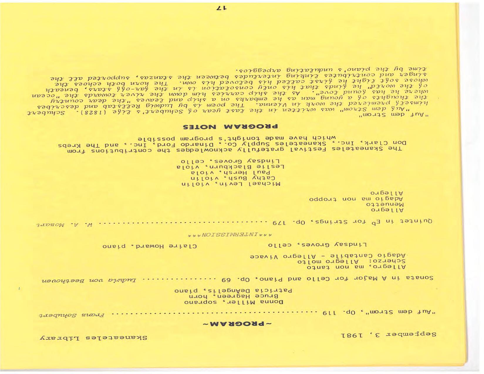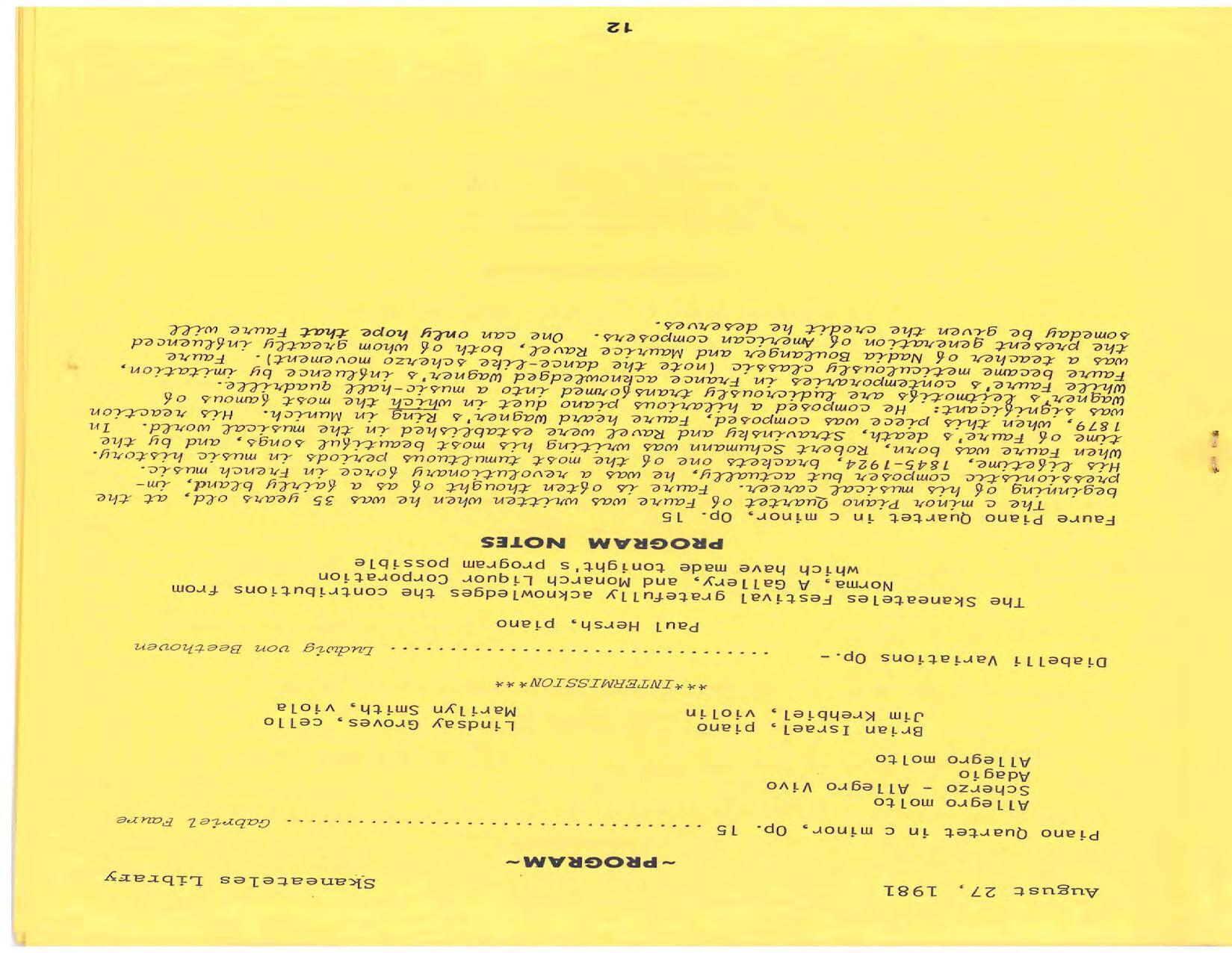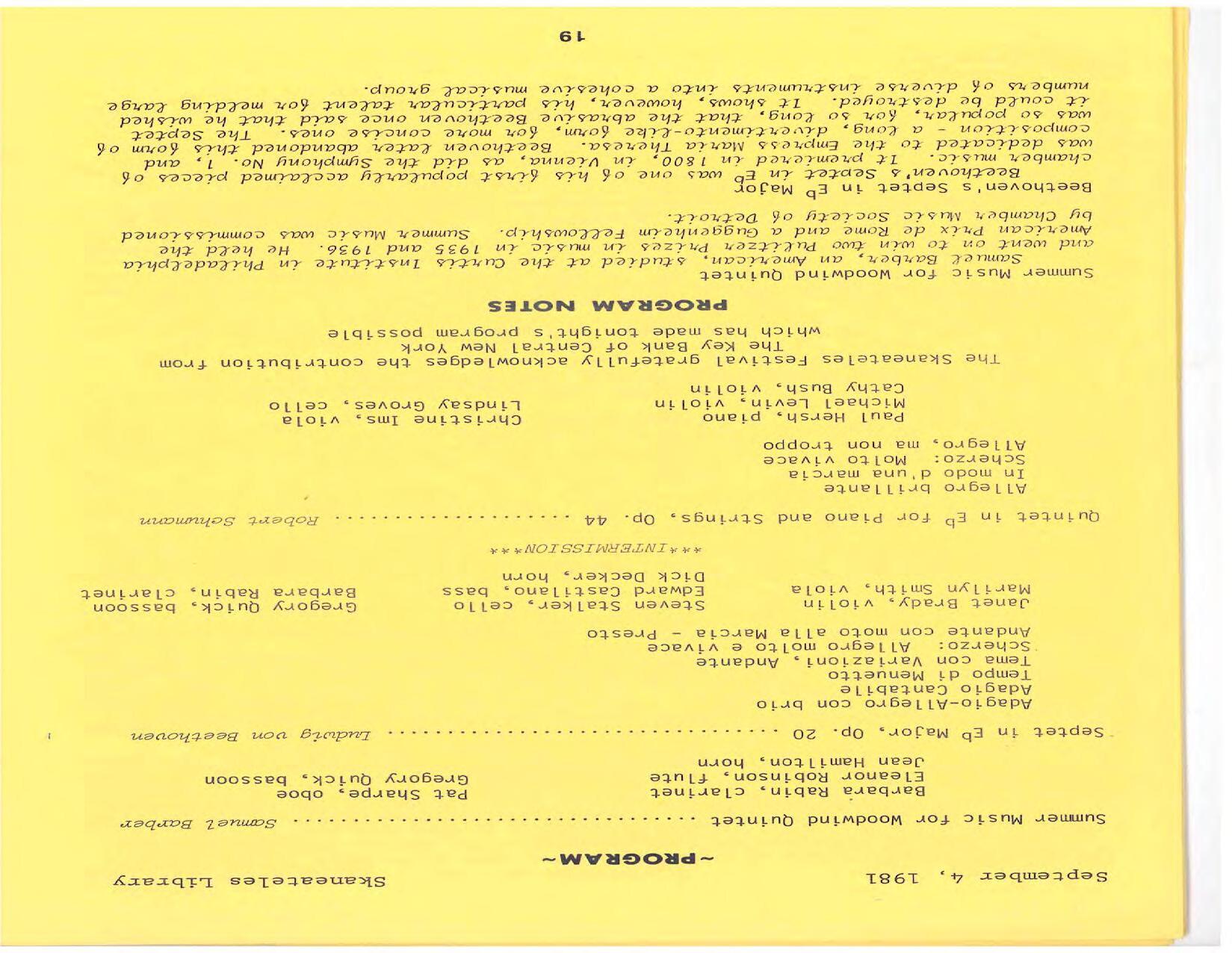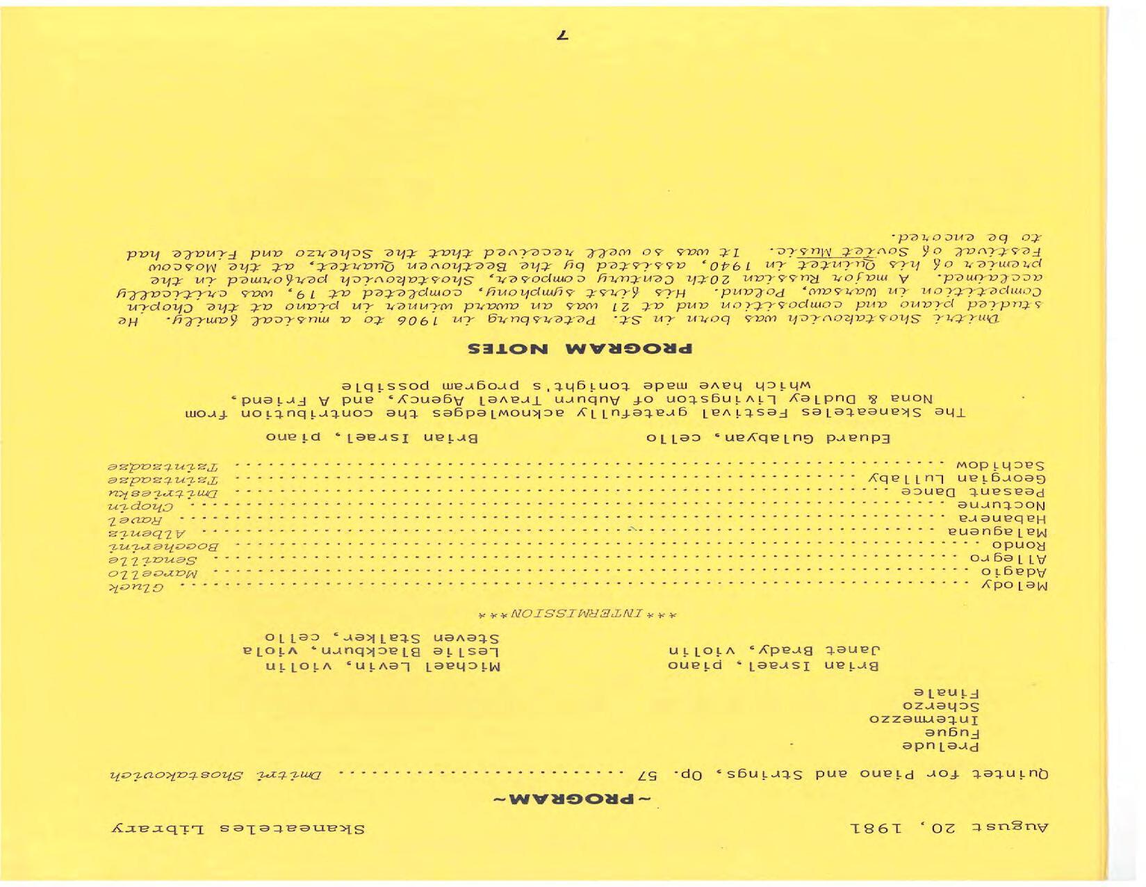 The season expands to three weeks of concerts at Library Hall. Pianist/violinist Paul Hersh is the artist in residence. His debut is in Beethoven’s Diabelli Variations. He performs with his son Stefan Hersh on violin in Brahms’ Sonata No. 1 in G Minor and plays piano in Bach’s Brandenburg Concerto No. 5 at Brook Farm. Frank Weinstock is the pianist in Schubert’s Trout Quintet for piano and strings: Michael Levin, violin; Marilyn Smith, viola; Lindsay Groves, cello; and Edward Castilano, bass.