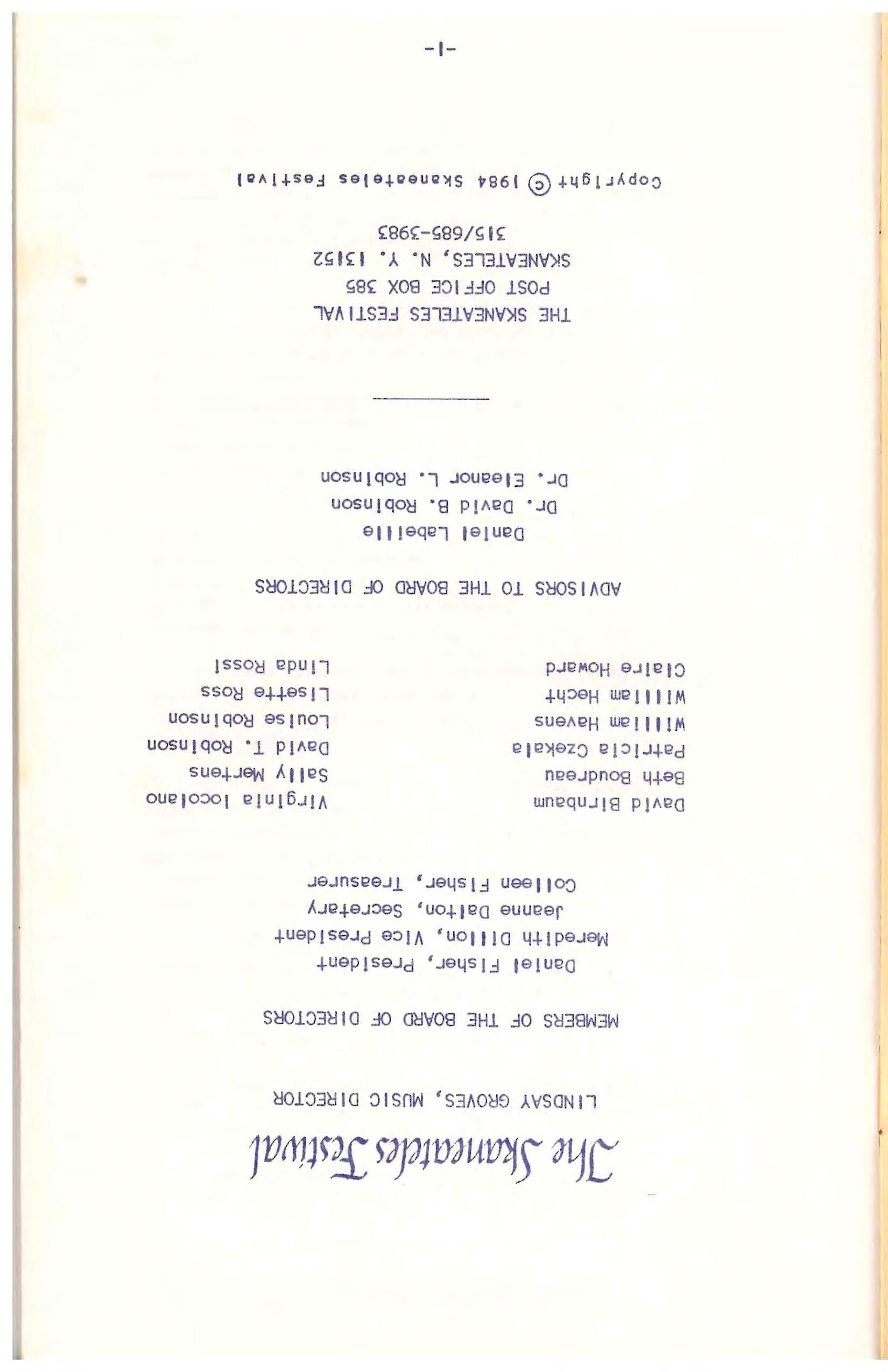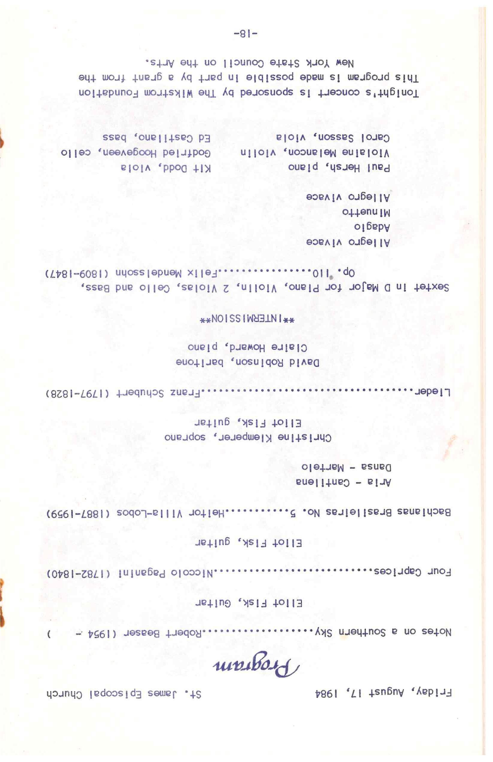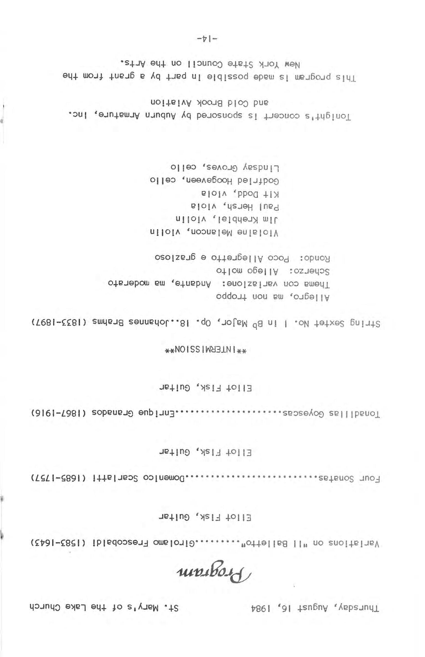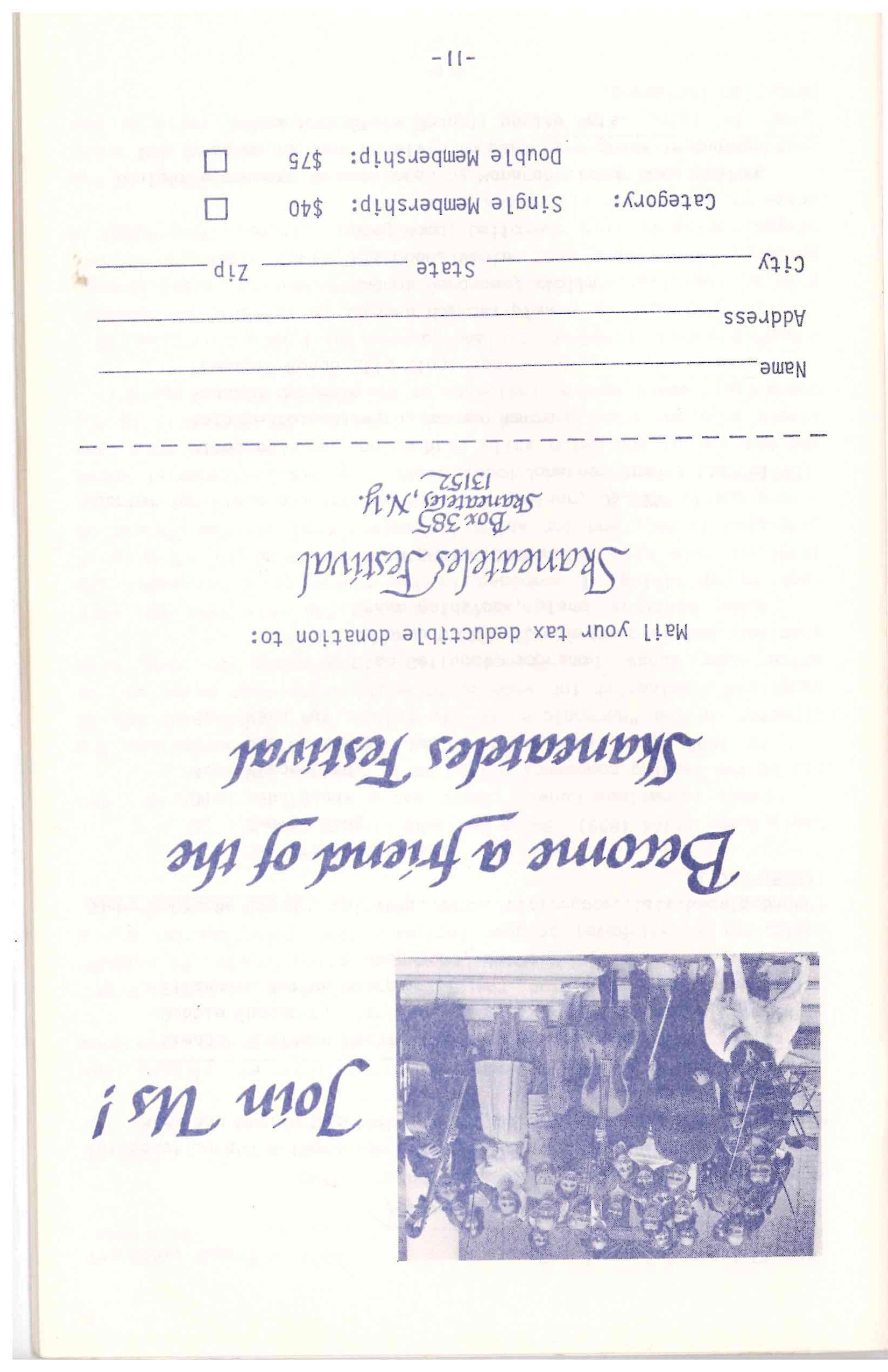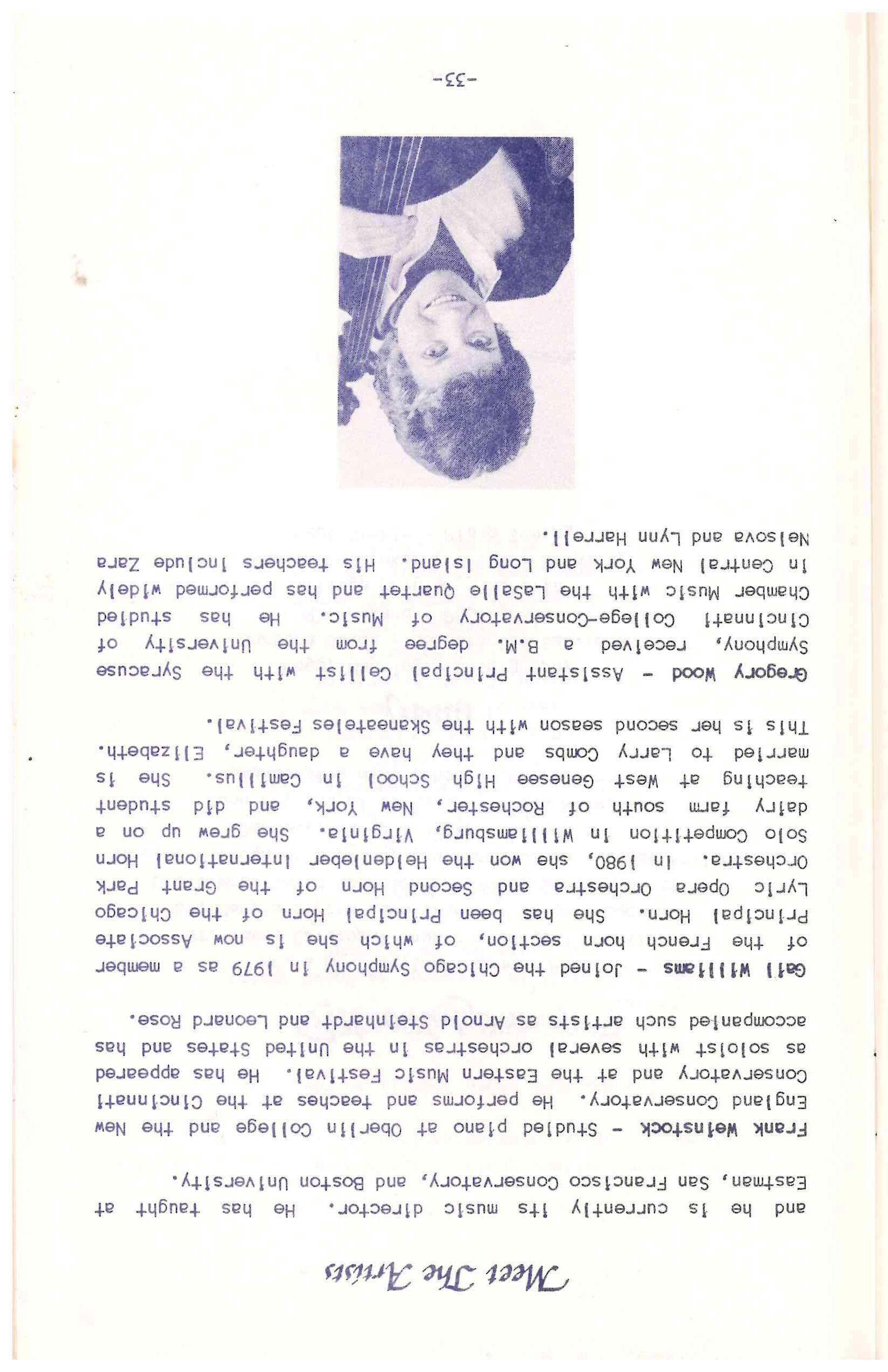 Violinist Andres Cardenes makes his Festival debut Aug. 9 in Brahms’ Piano Quartet No. 1 in G Minor and Dvořák’s Quartet No. 1 in D Major. The Syracuse Vocal Ensemble, conducted by G. Burton Harbison, performs Haydn’s Lord Nelson Mass. Guitarist Eliot Fisk performs eight pieces over three nights. Jonathan McPhee conducts the final concert, featuring Larry Combs in Mozart’s Clarinet Concerto in A Major, Steven Doane in Haydn’s Cello Concerto in C Major, Joseph Genualdi in Viotti’s Concerto in A Minor, and soprano Julie Newell in Mozart’s Exsultate, Jubilate!
