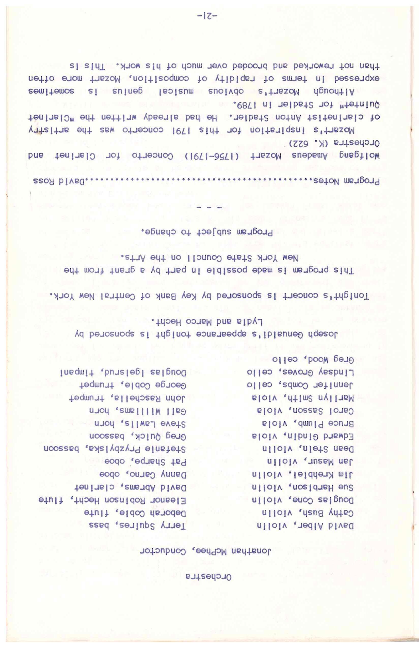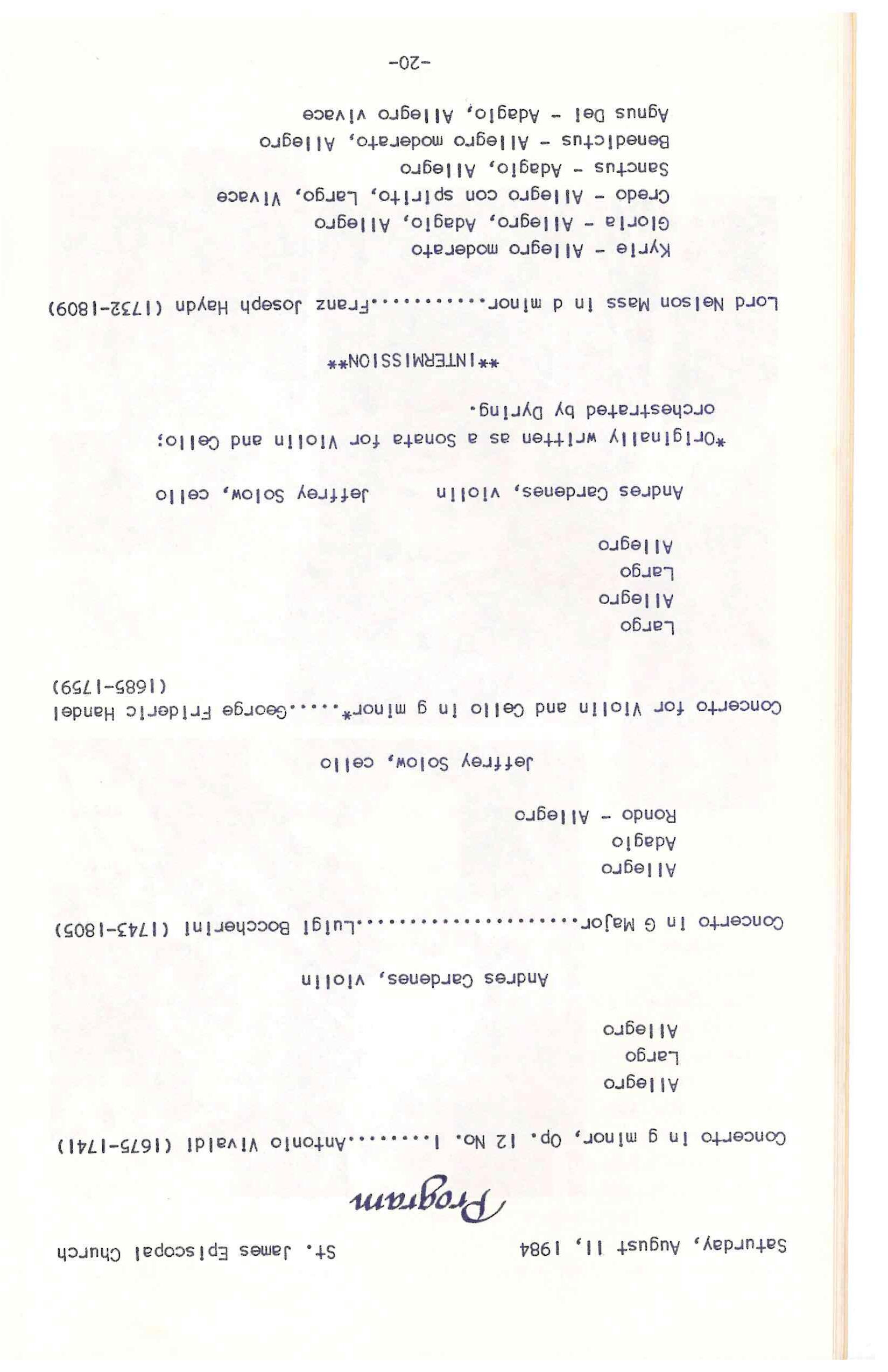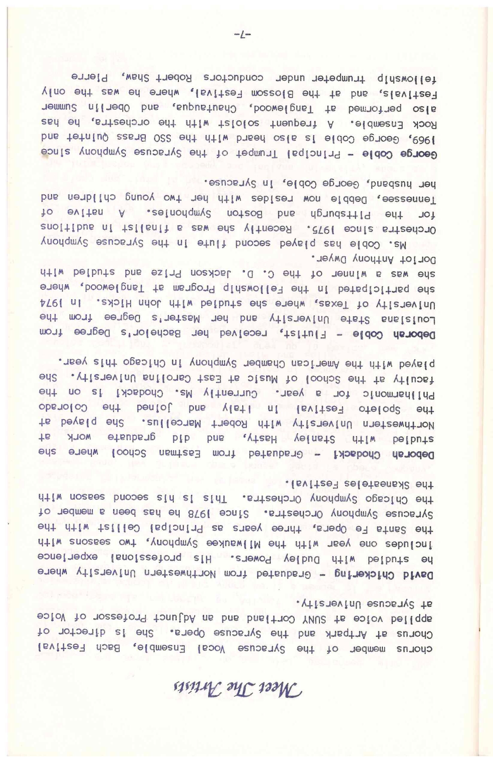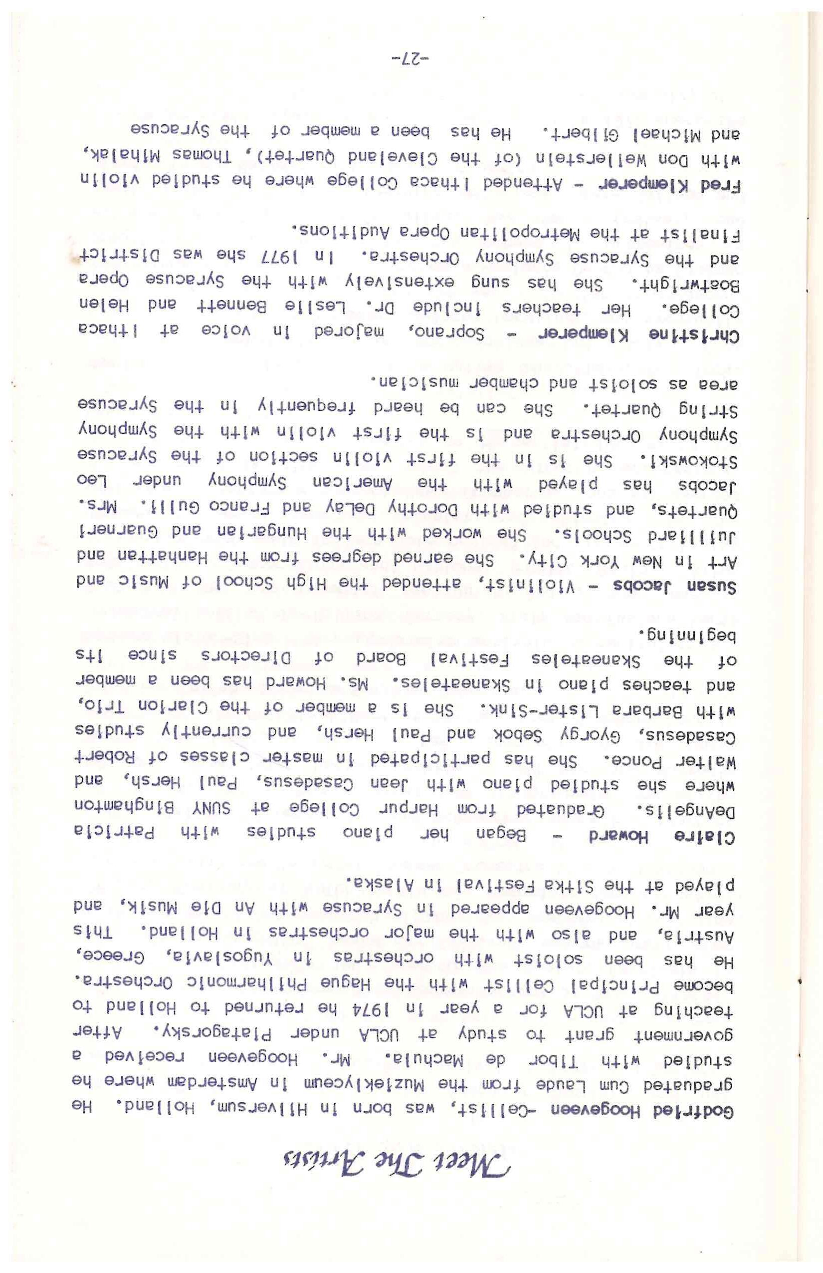 Violinist Andres Cardenes makes his Festival debut Aug. 9 in Brahms’ Piano Quartet No. 1 in G Minor and Dvořák’s Quartet No. 1 in D Major. The Syracuse Vocal Ensemble, conducted by G. Burton Harbison, performs Haydn’s Lord Nelson Mass. Guitarist Eliot Fisk performs eight pieces over three nights. Jonathan McPhee conducts the final concert, featuring Larry Combs in Mozart’s Clarinet Concerto in A Major, Steven Doane in Haydn’s Cello Concerto in C Major, Joseph Genualdi in Viotti’s Concerto in A Minor, and soprano Julie Newell in Mozart’s Exsultate, Jubilate!