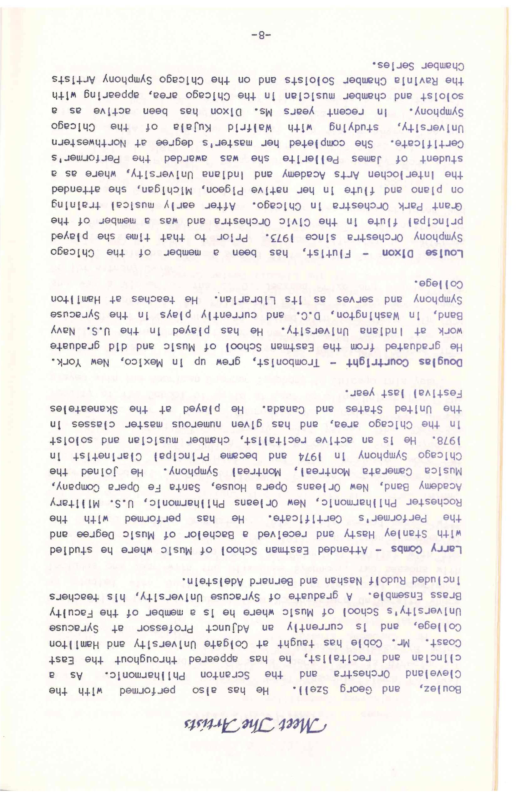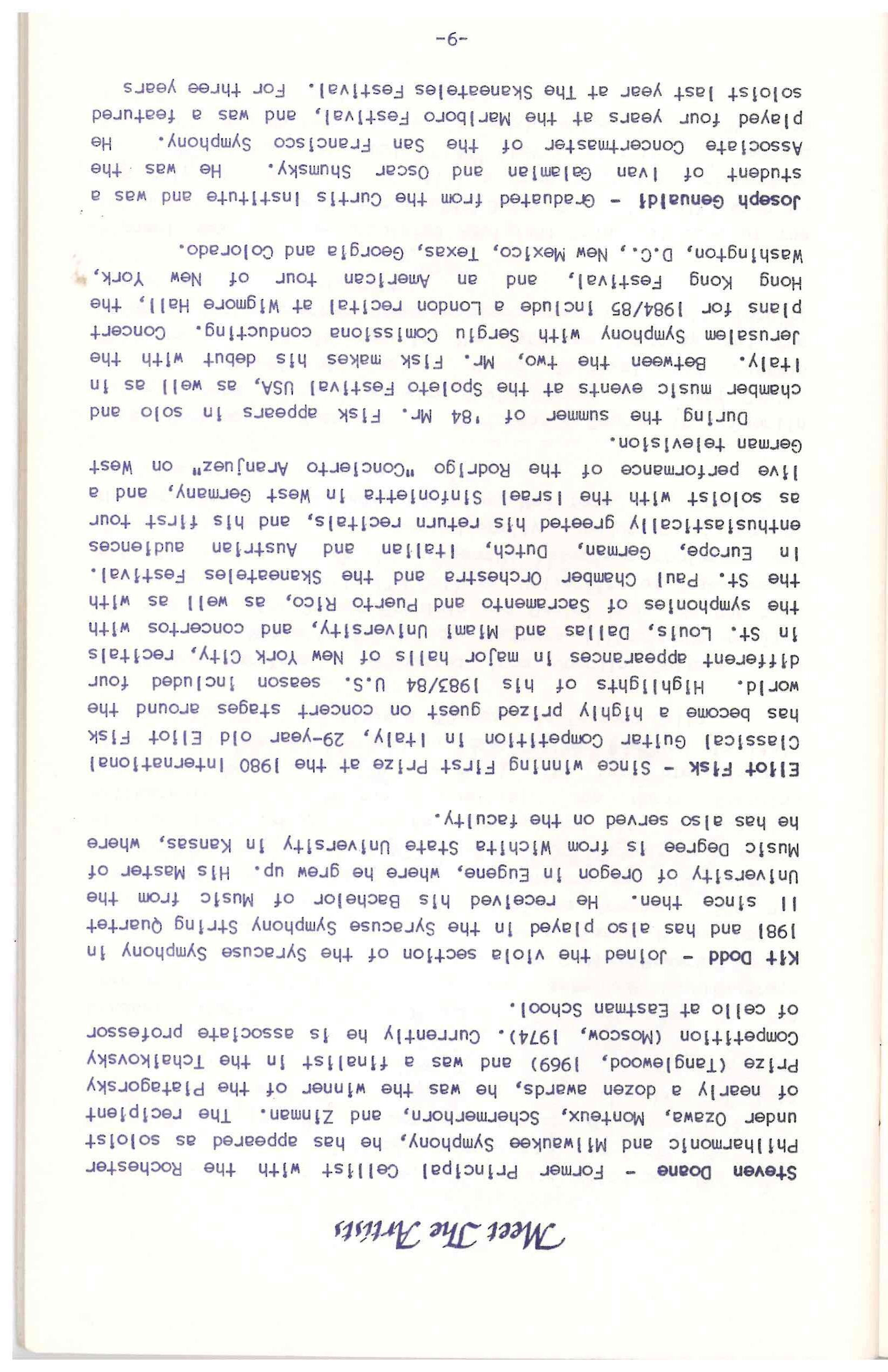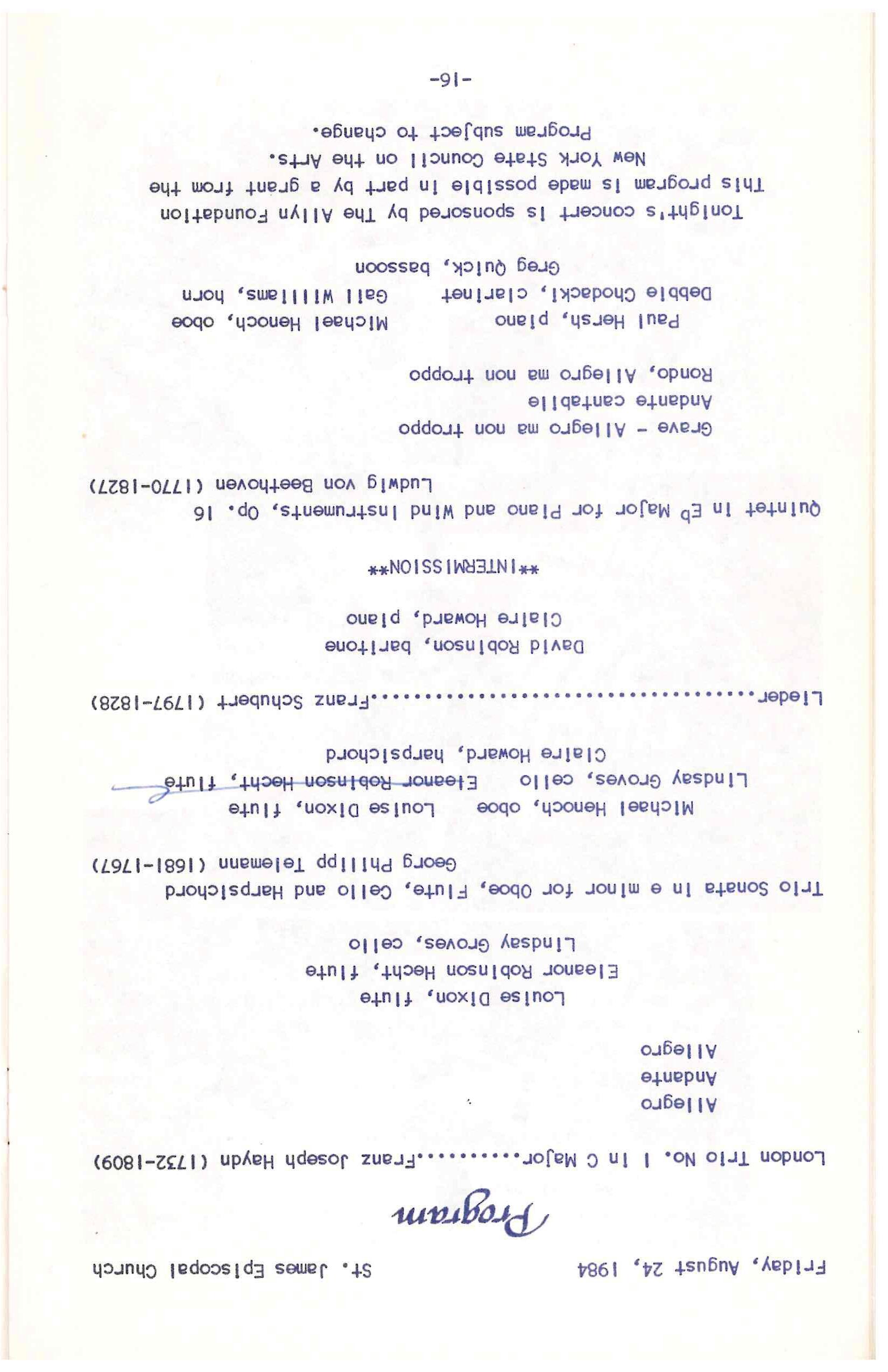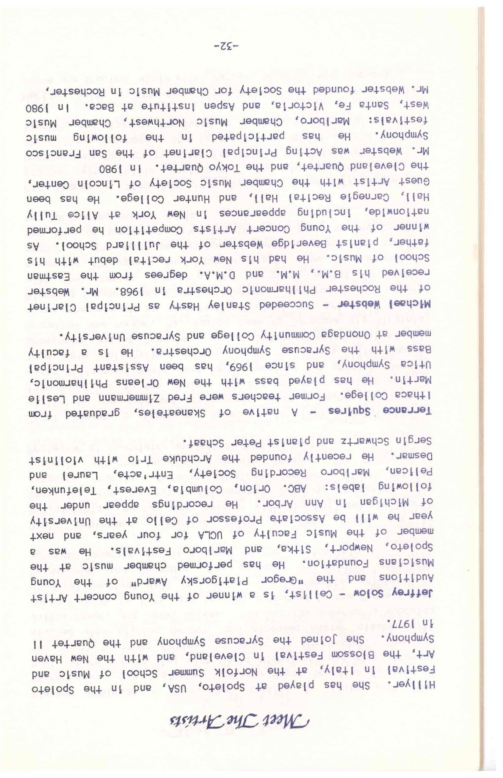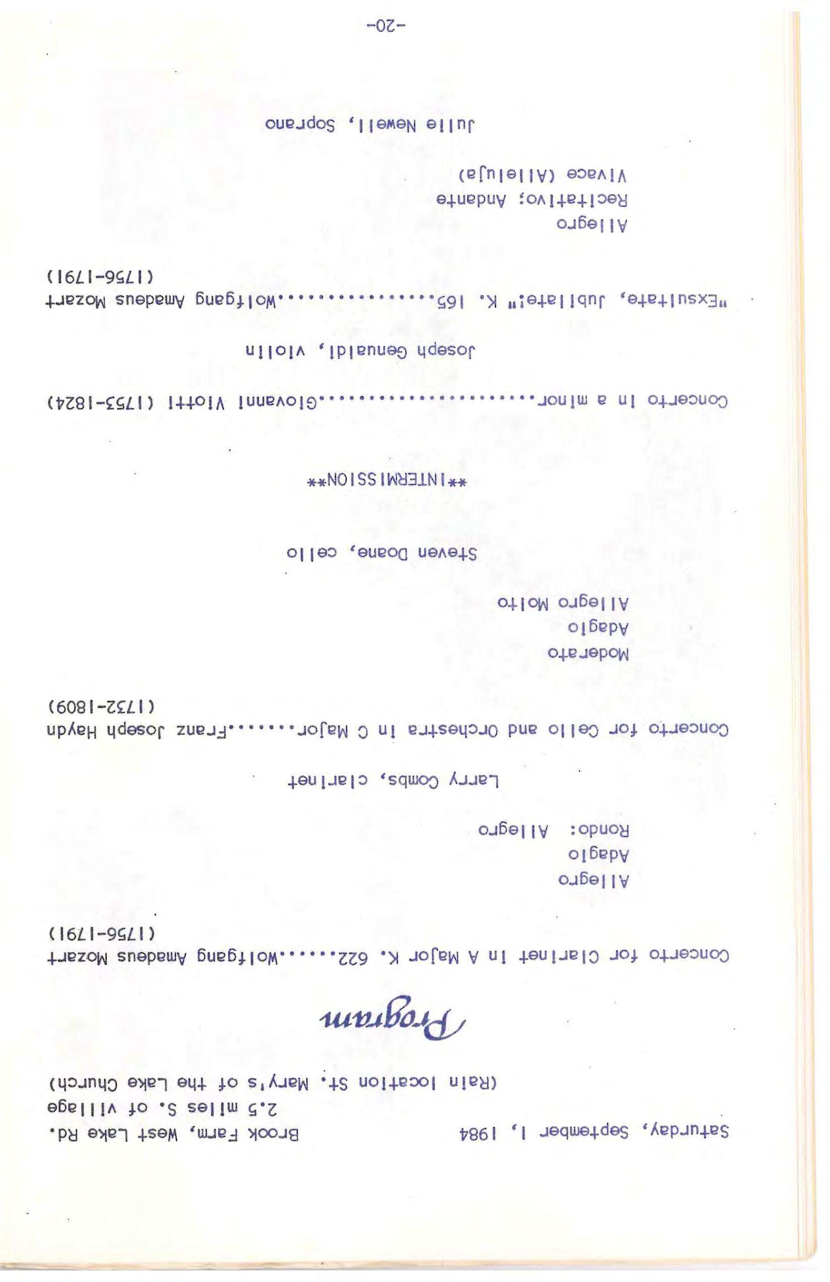 Violinist Andres Cardenes makes his Festival debut Aug. 9 in Brahms’ Piano Quartet No. 1 in G Minor and Dvořák’s Quartet No. 1 in D Major. The Syracuse Vocal Ensemble, conducted by G. Burton Harbison, performs Haydn’s Lord Nelson Mass. Guitarist Eliot Fisk performs eight pieces over three nights. Jonathan McPhee conducts the final concert, featuring Larry Combs in Mozart’s Clarinet Concerto in A Major, Steven Doane in Haydn’s Cello Concerto in C Major, Joseph Genualdi in Viotti’s Concerto in A Minor, and soprano Julie Newell in Mozart’s Exsultate, Jubilate!
