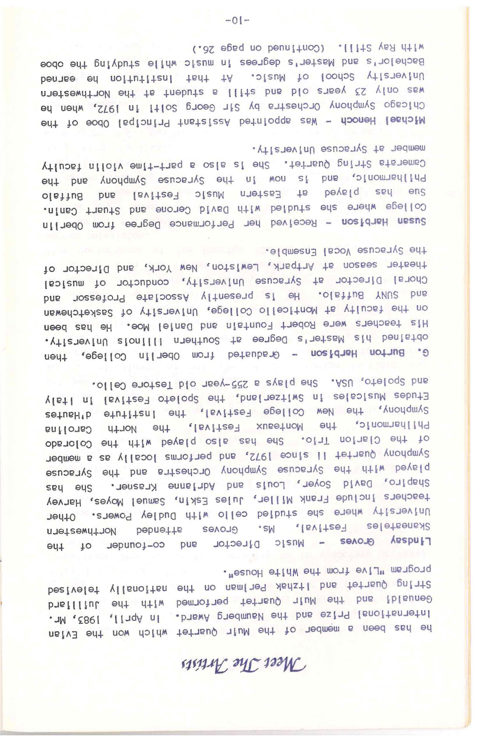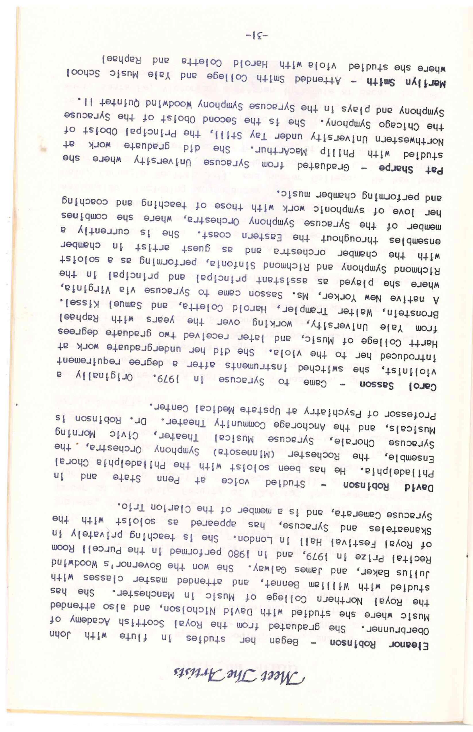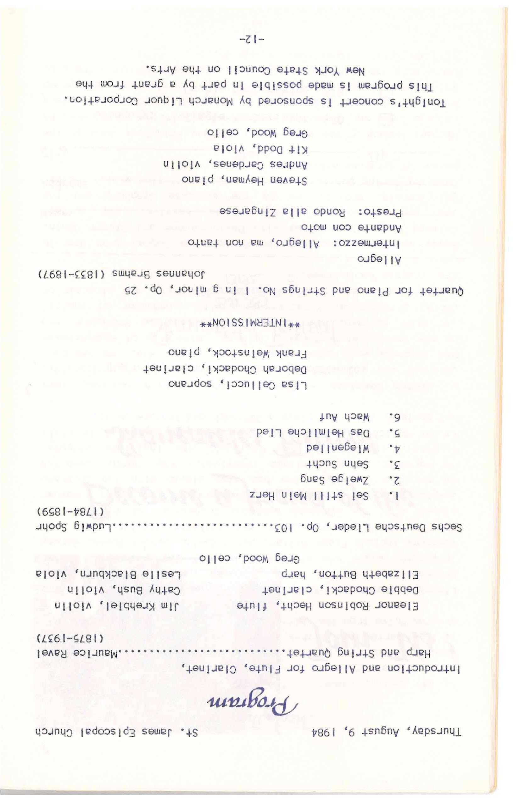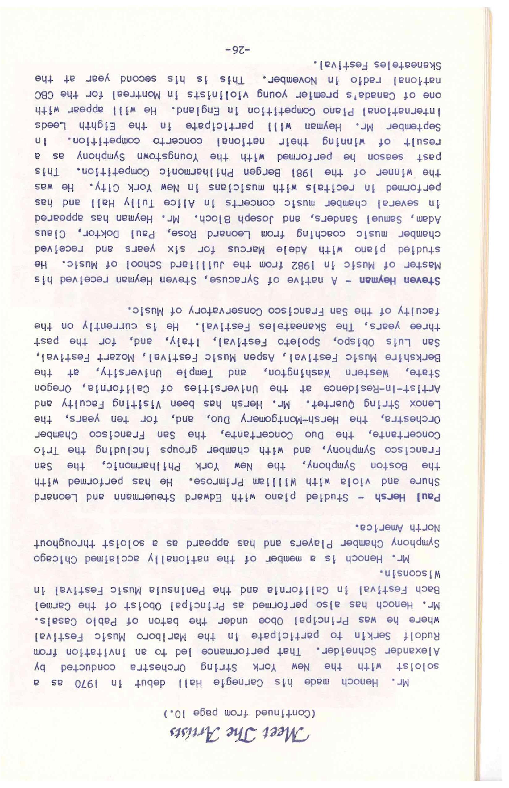 Violinist Andres Cardenes makes his Festival debut Aug. 9 in Brahms’ Piano Quartet No. 1 in G Minor and Dvořák’s Quartet No. 1 in D Major. The Syracuse Vocal Ensemble, conducted by G. Burton Harbison, performs Haydn’s Lord Nelson Mass. Guitarist Eliot Fisk performs eight pieces over three nights. Jonathan McPhee conducts the final concert, featuring Larry Combs in Mozart’s Clarinet Concerto in A Major, Steven Doane in Haydn’s Cello Concerto in C Major, Joseph Genualdi in Viotti’s Concerto in A Minor, and soprano Julie Newell in Mozart’s Exsultate, Jubilate!