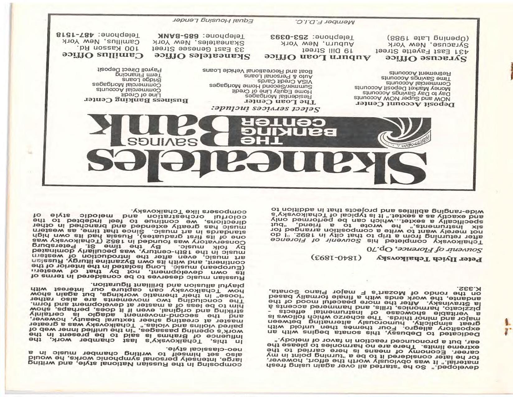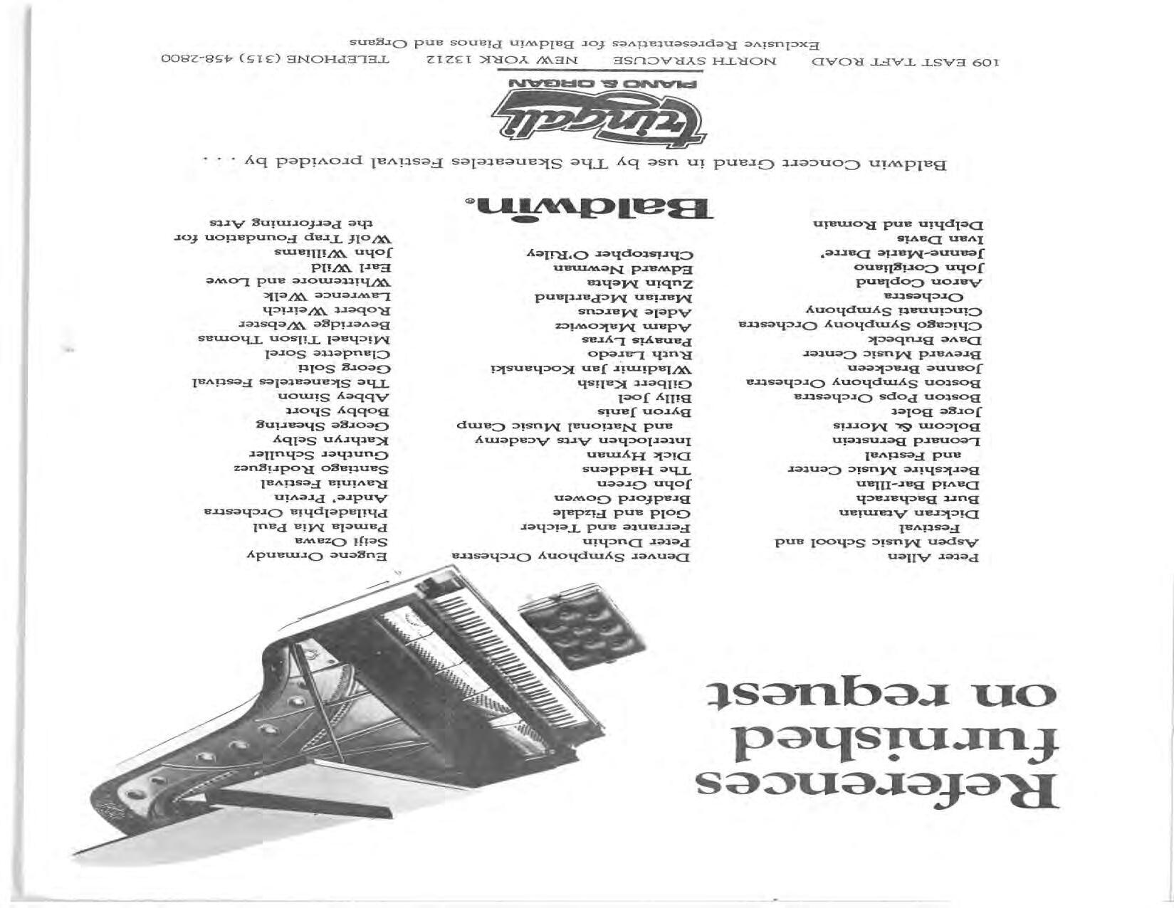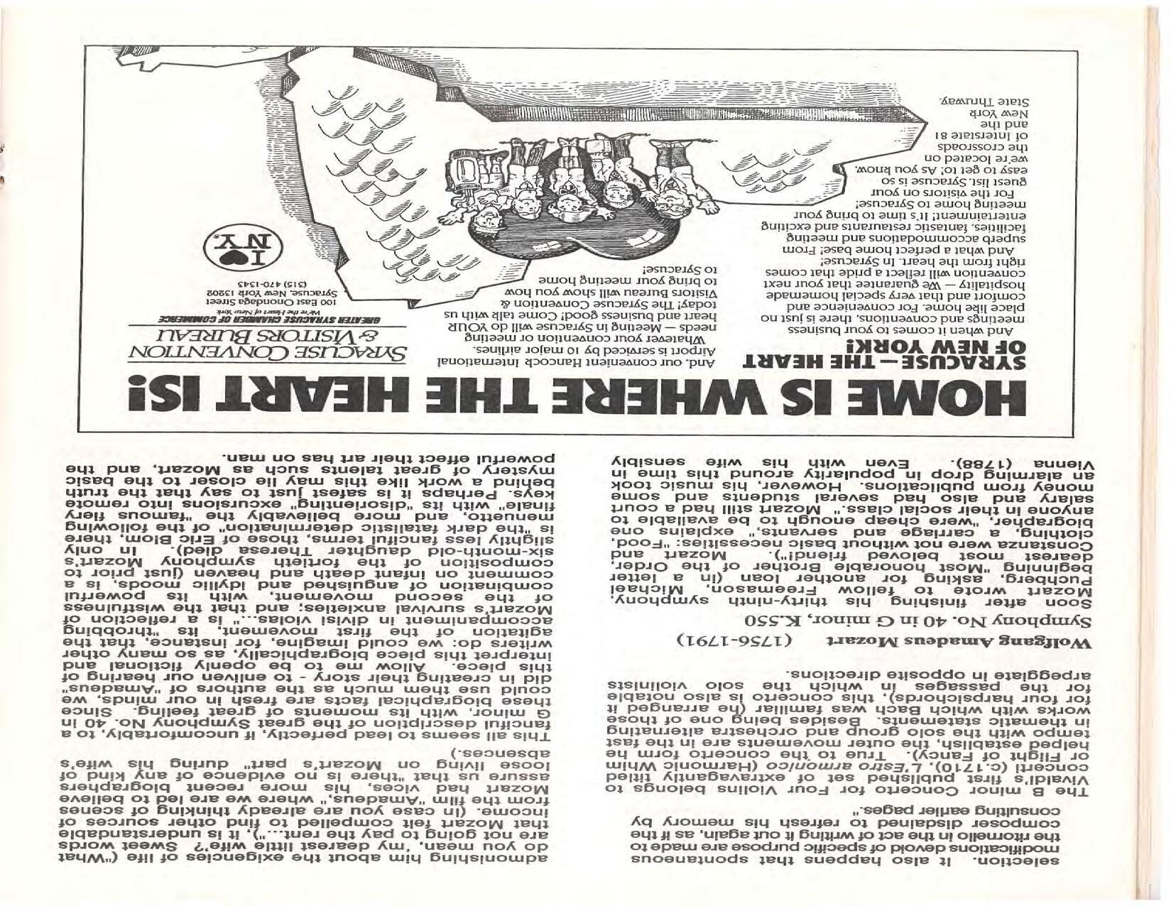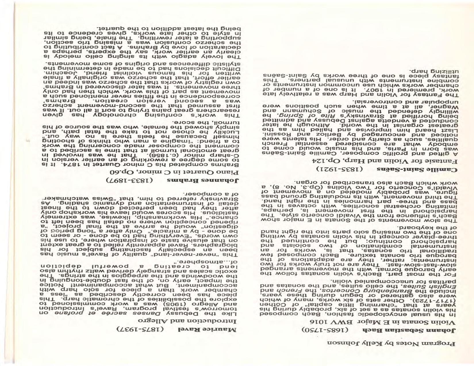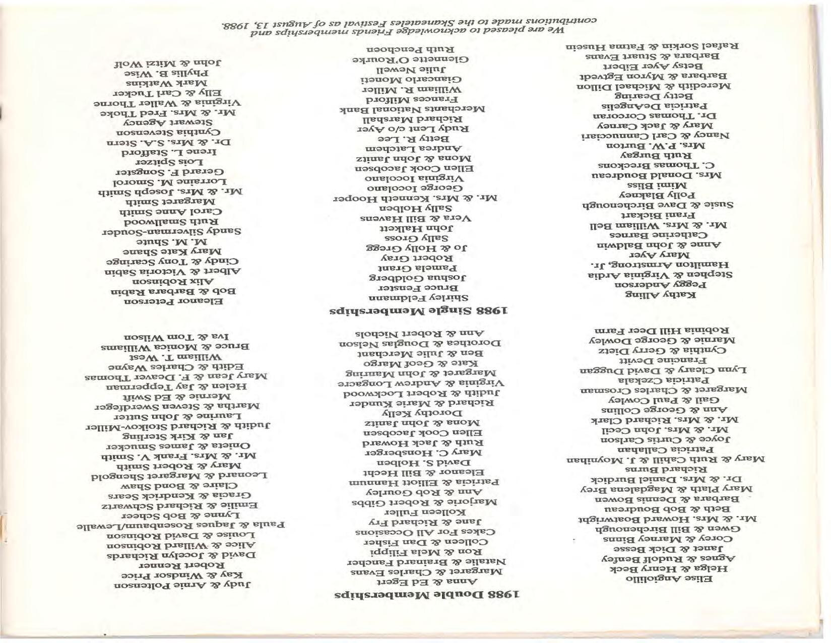 The Festival Educational Outreach Program presents Prokofiev’s Peter and the Wolf to 900 schoolchildren at Allyn Arena in June. Thomas Benjamin’s Nocturne/Aubade/Danse has its world premiere, with Andrea Bonsignore-Berry, oboe; Alan Ross, violin; Michelle LaCourse, viola; and Lindsay Groves, cello. Robert Weirich gives his first lecture-recital, on Elliott Carter’s Piano Sonata. Cellist Yuli Turovsky plays in Schubert’s Quintet for Strings, D. 956 and Tchaikovsky’s sextet Souvenir of Florence, solos in Boccherini’s Concerto for Cello and Strings, and conducts Mozart’s Symphony No. 40. Robert Weirich plays Mozart’s Piano Concerto No. 22 in the final concert, David Zinman conducting.