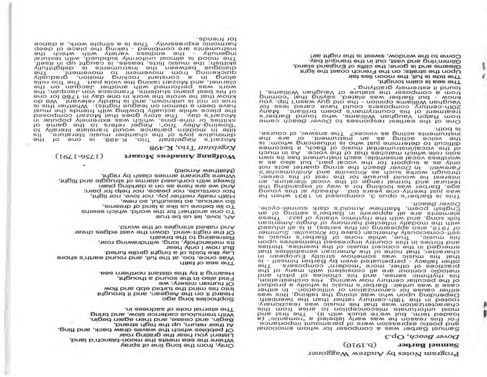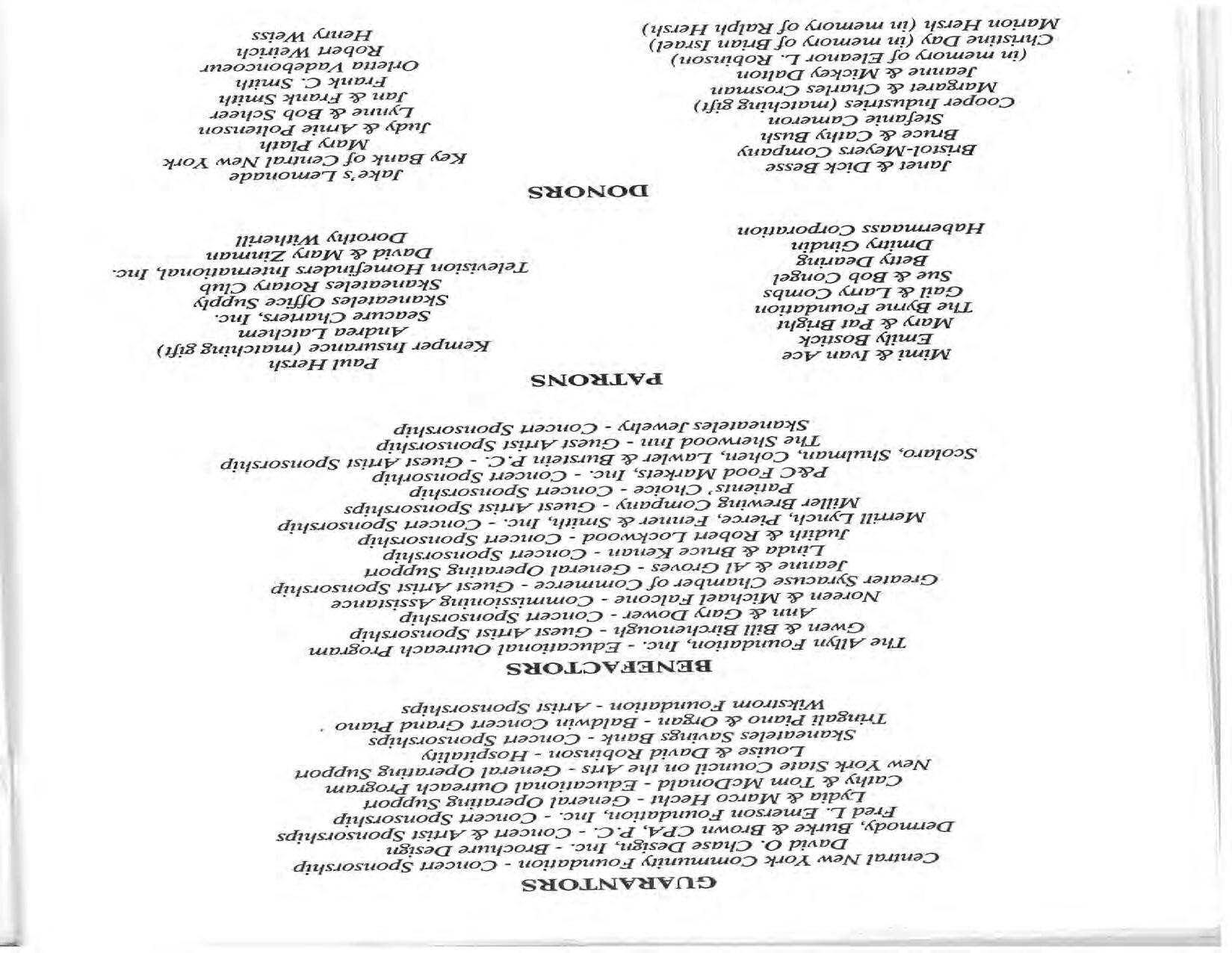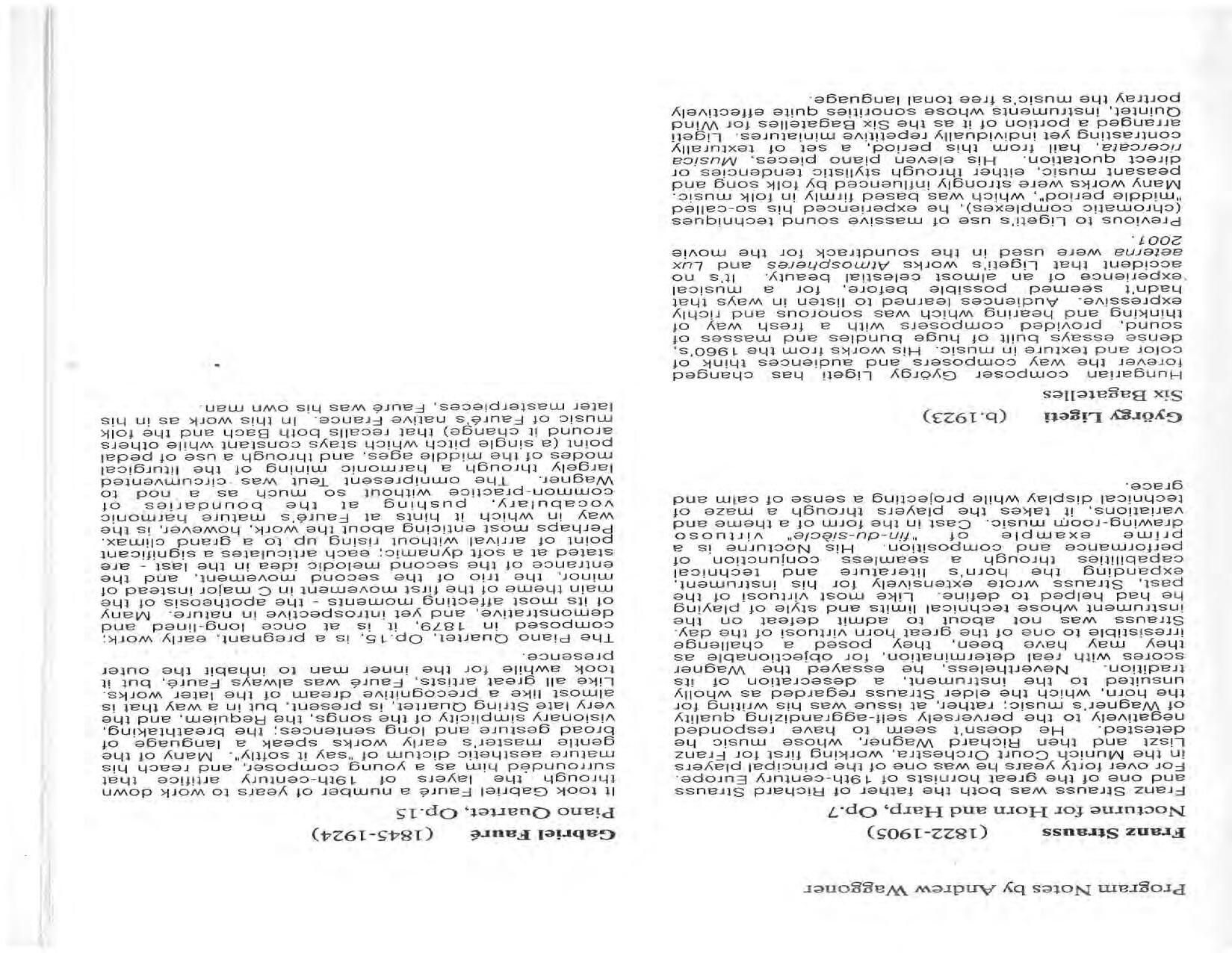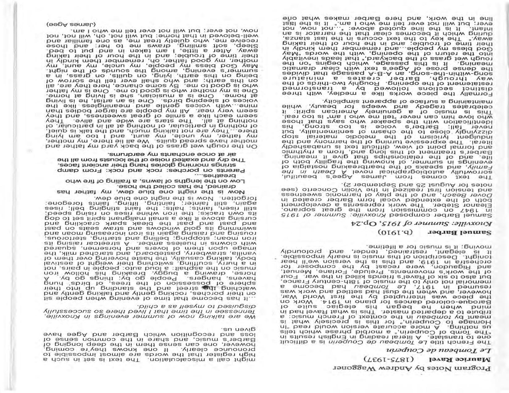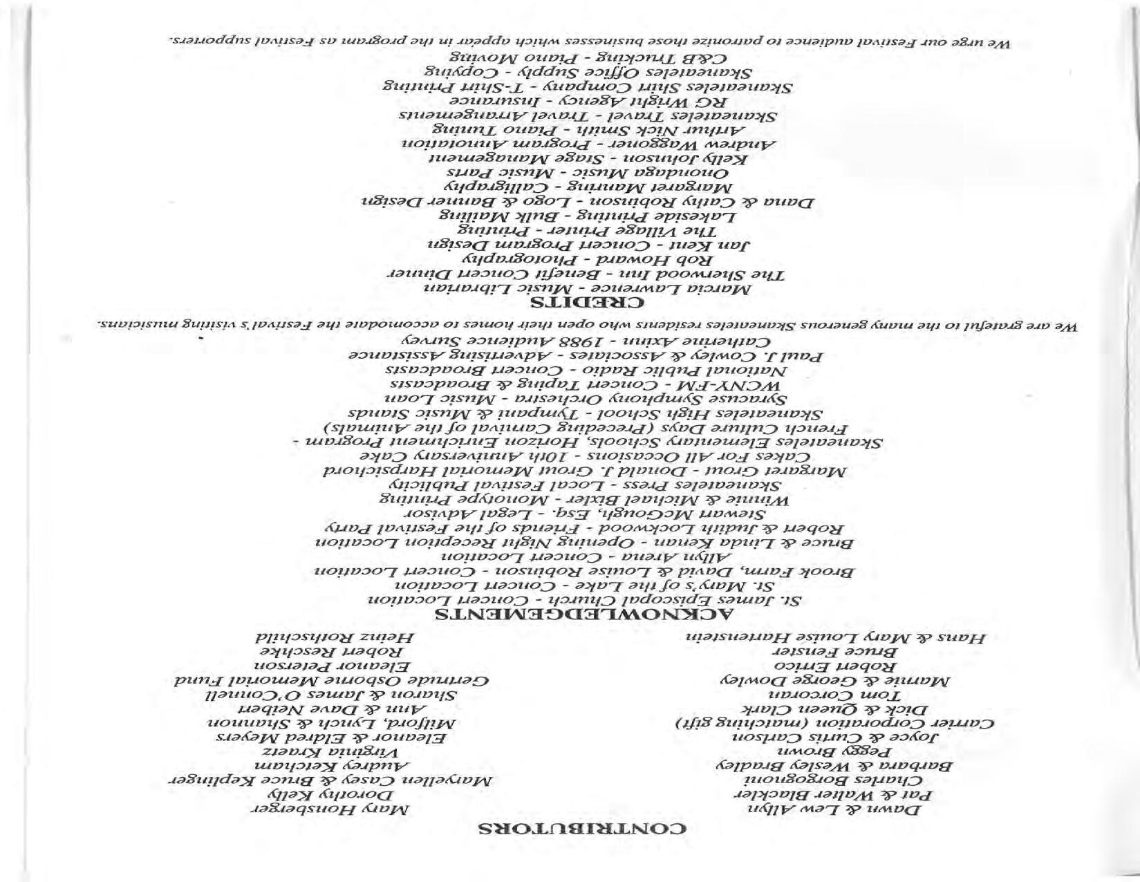 Pianist Ruth Laredo and violinist Kurt Nikkanen perform in Franck’s Sonata for Violin and Piano, Dvořák’s Dumky Trio, and Schumann’s Quintet for Piano and Strings in E-flat Major. Kurt Nikkanen plays Mozart’s Violin Concerto No. 3, Jonathan McPhee conducting. Pianist Ian Hobson performs in Mendelssohn’s Piano Quartet in B Minor and Beethoven’s Archduke Trio, and conducts a concert of two pieces by Delius and Dvořák. Eric Ruske, horn, appears in Schubert’s Auf dem Strom, Harbison’s Twilight Music for Horn, Violin and Piano, and is soloist in Dukas’ Villanelle for Horn and Orchestra, Emily Freeman Brown conducting. Andres Cardenes and Deborah Hoffman perform the world premiere of Ricardo Lopez’ Jaromiluna for Violin and Harp, commissioned by Cardenes. In the final concert, Andres Cardenes solos in the Barber Violin Concerto, David Zinman conducting.
