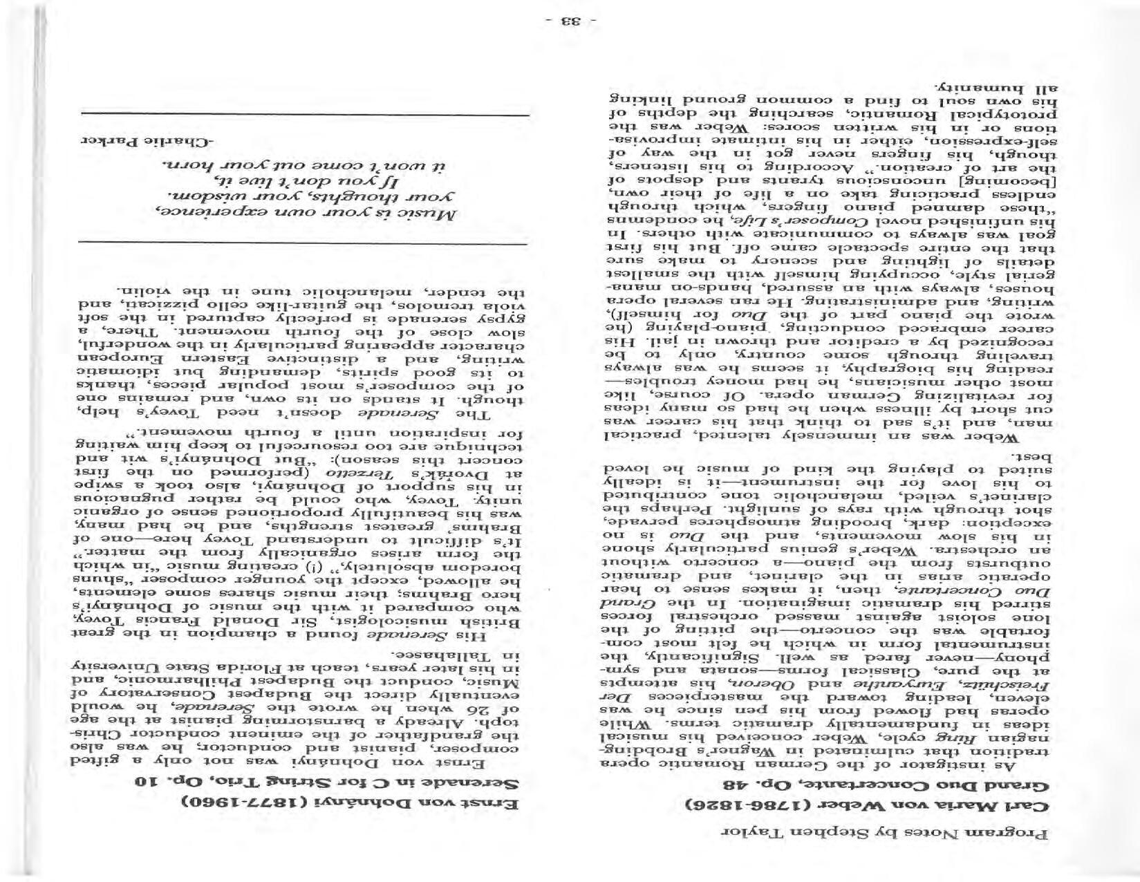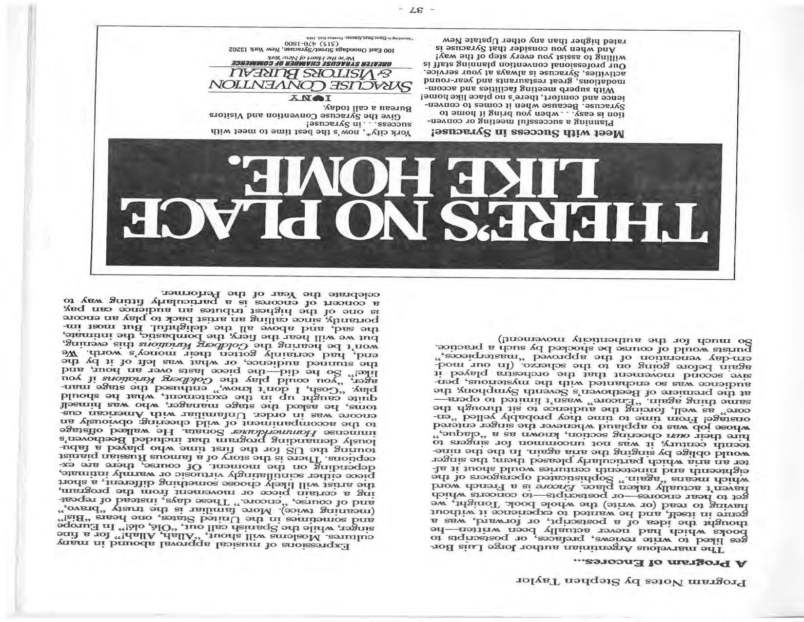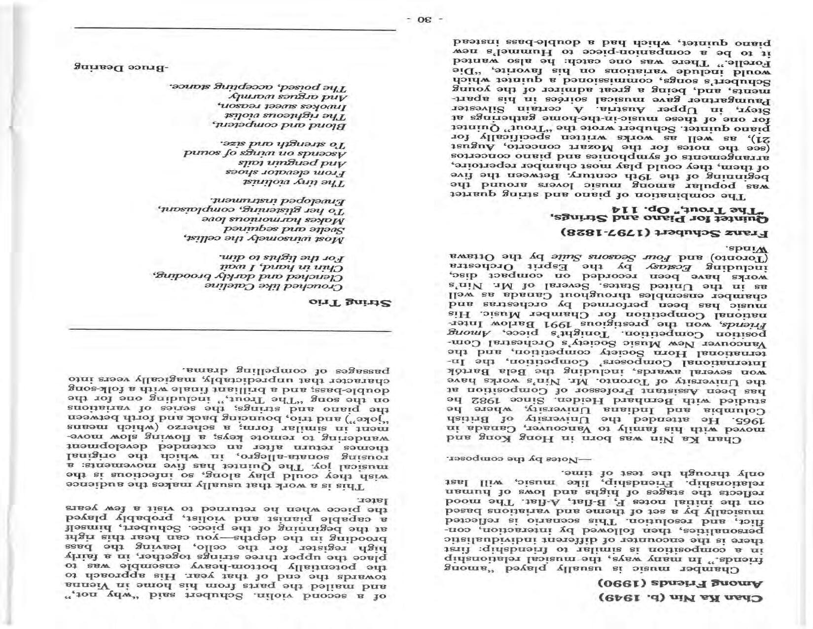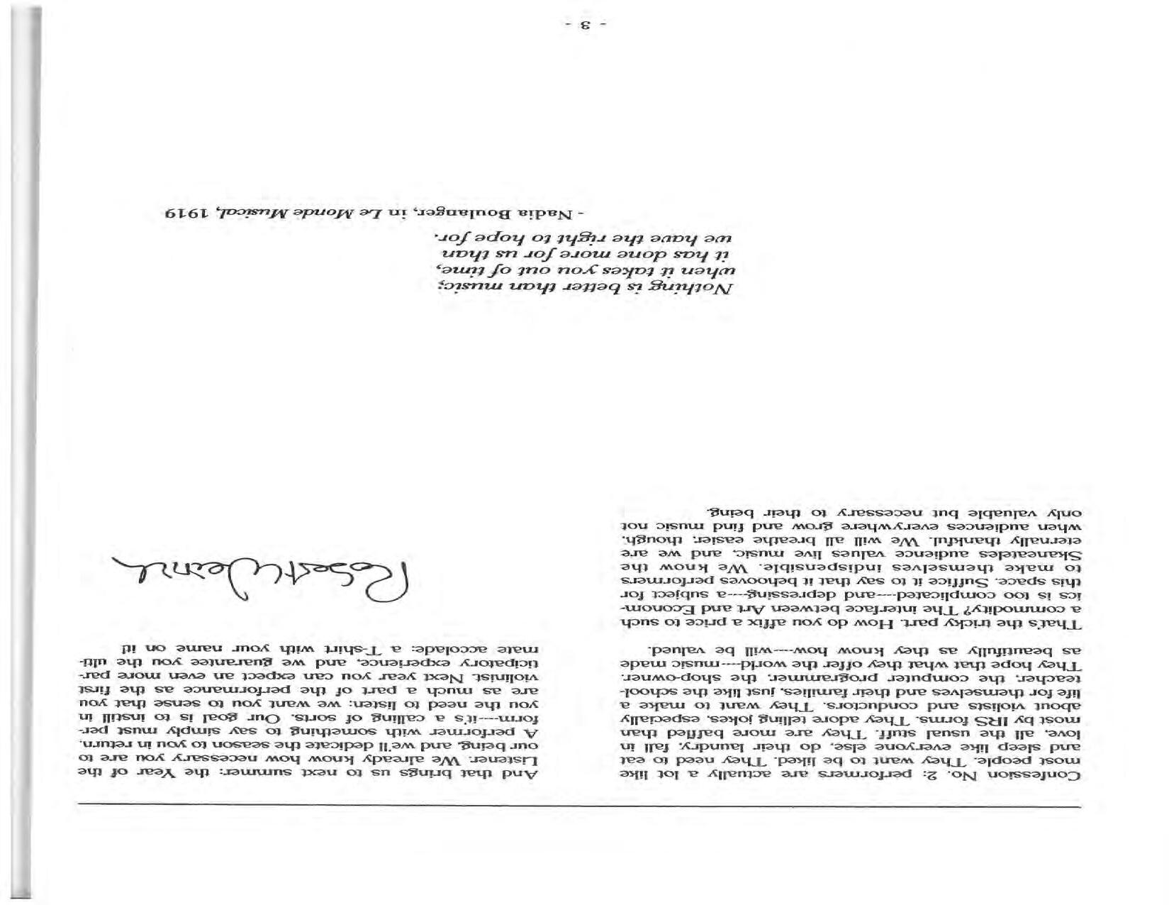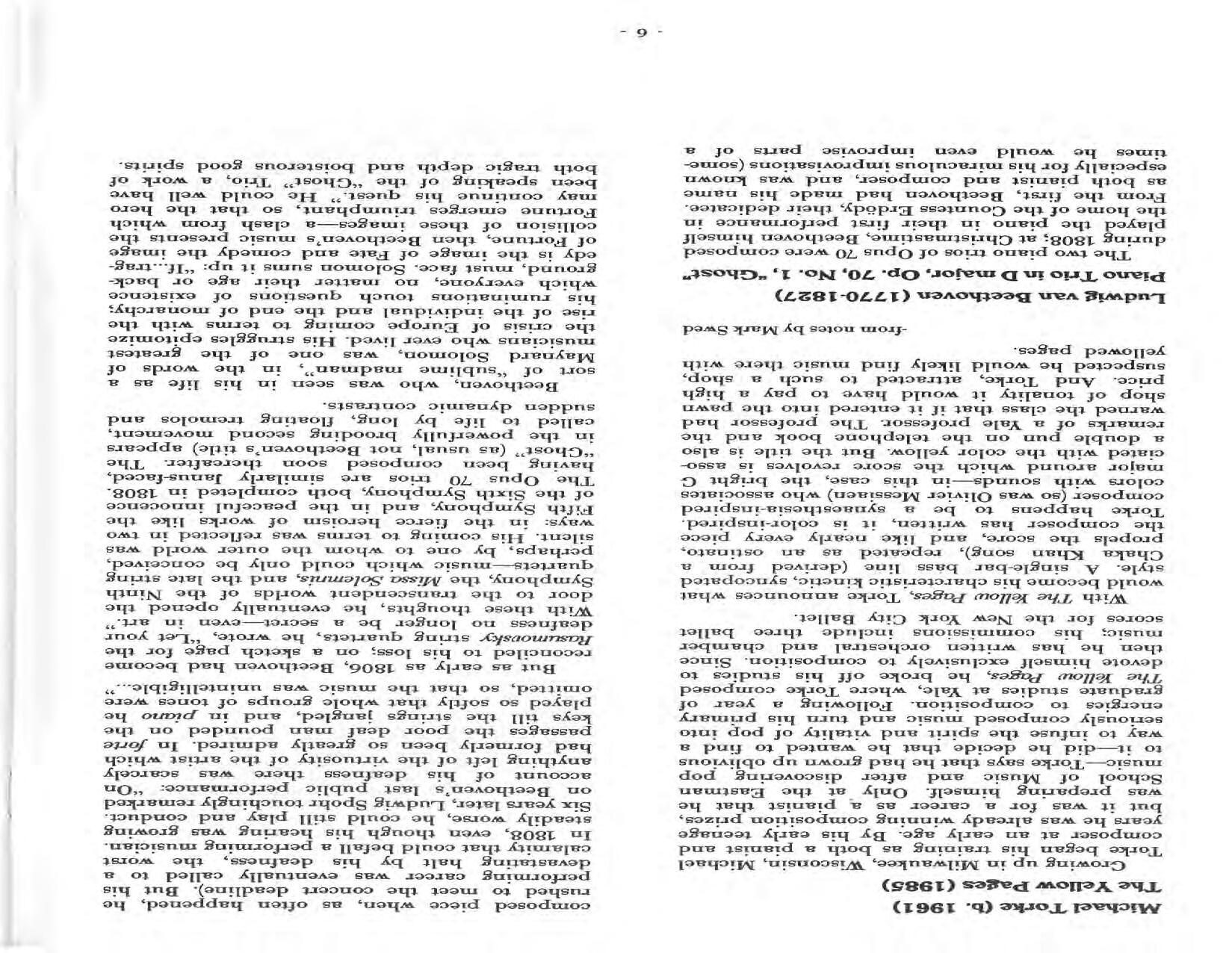 In February, the Festival and WCNY-FM win the Lucien Wulsin Award from National Public Radio’s Performance Today for the Aug. 19, 1989 recording of Delius’ On Hearing the First Cuckoo in Spring, Ian Hobson conducting. Joseph Genualdi is the violin soloist in Vivaldi’s The Four Seasons. The Peabody Trio performs Dvořák’s Piano Trio in F Minor. Aug. 16 is the American premiere of Joseph Thalken’s Introduction and Jazz Waltz for violin, soprano, saxophone, and piano, with Thalken on piano. Paul Hersh, piano; Andres Cardenes, violin; and Anne Williams, cello, perform Brahms’ Piano Trio in C Minor. In the final concert, Kenneth Kiesler conducts Beethoven’s Triple Concerto with Andres Cardenes (violin), Anne Williams (cello), and Robert Weirich (piano).