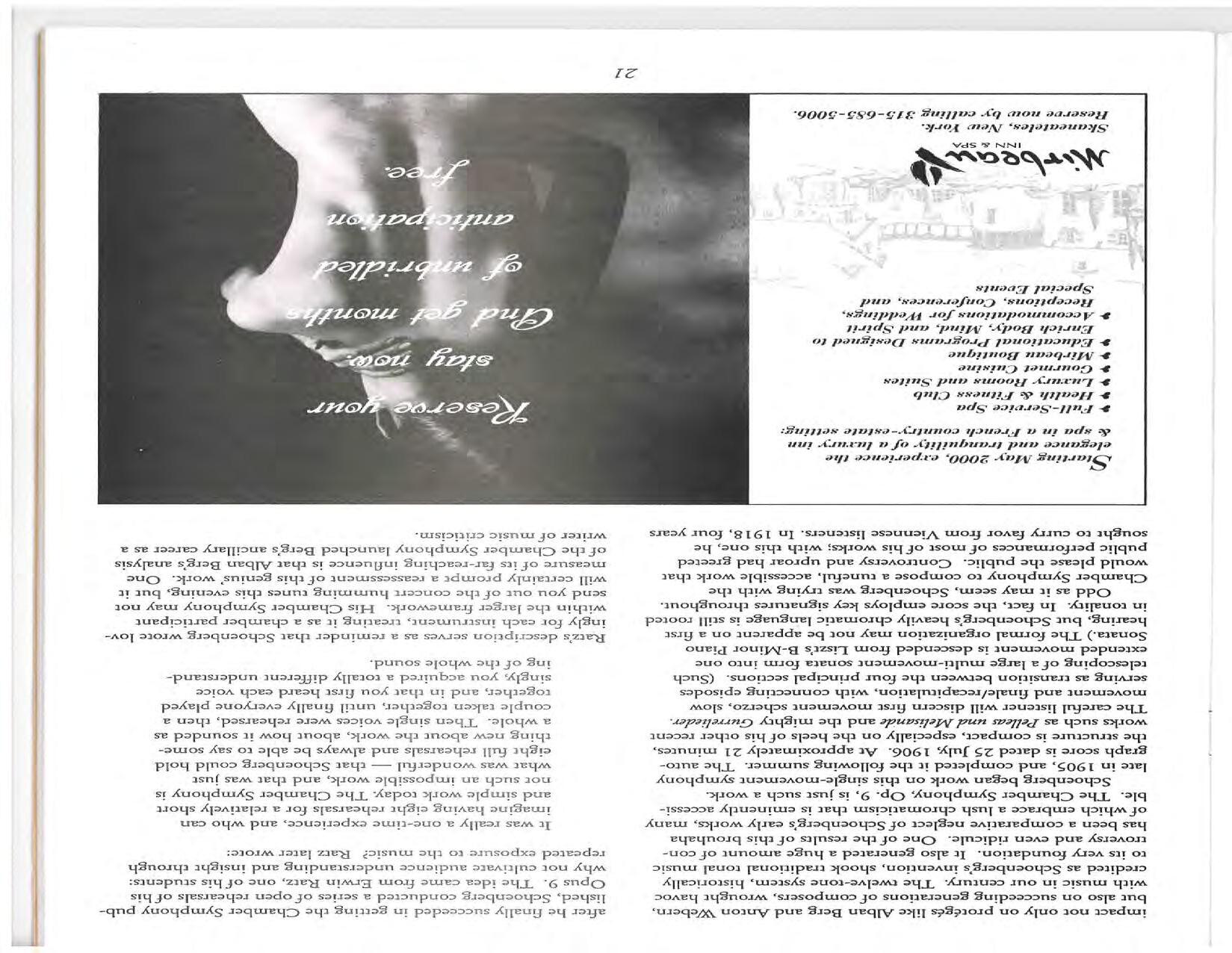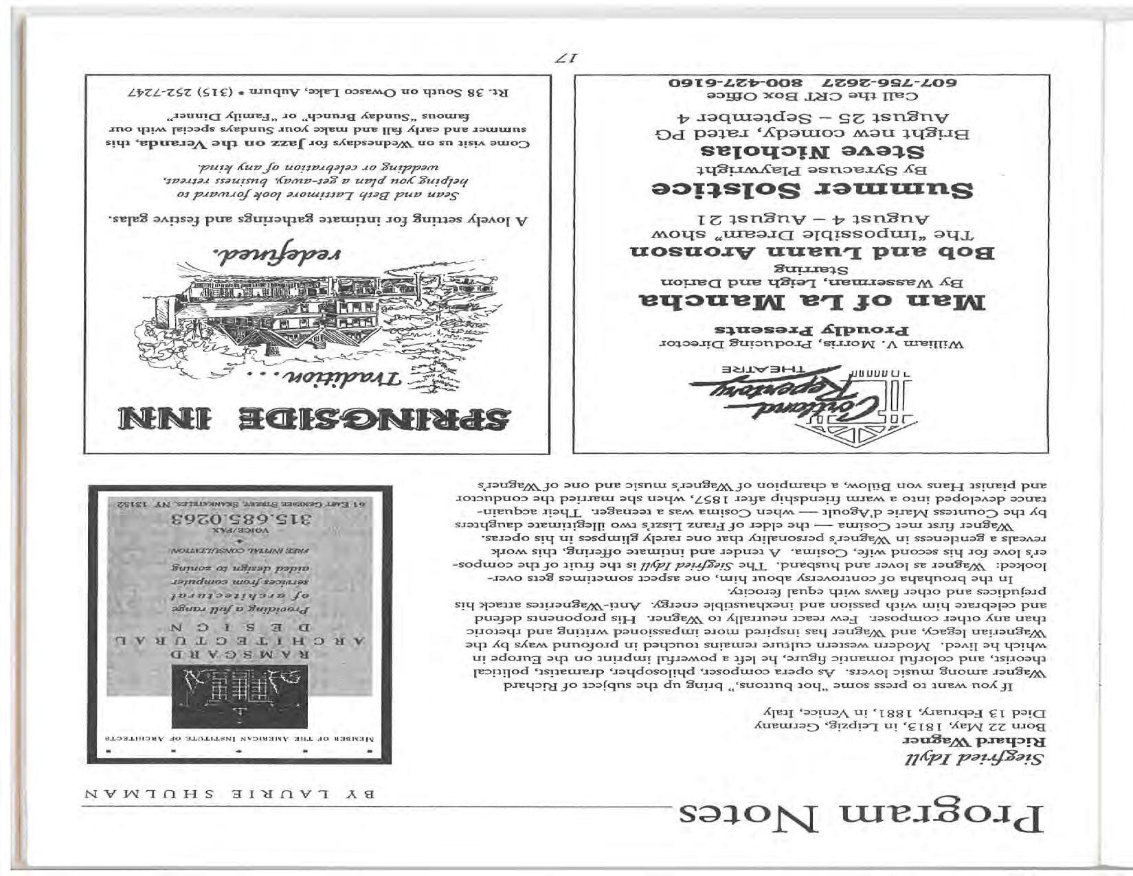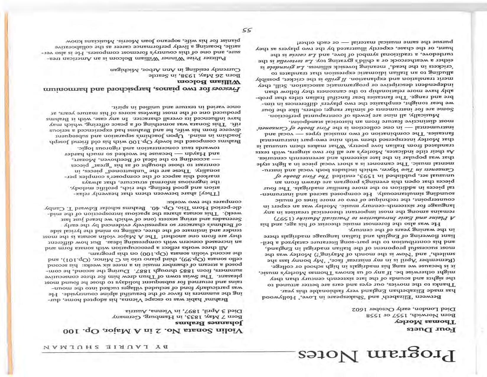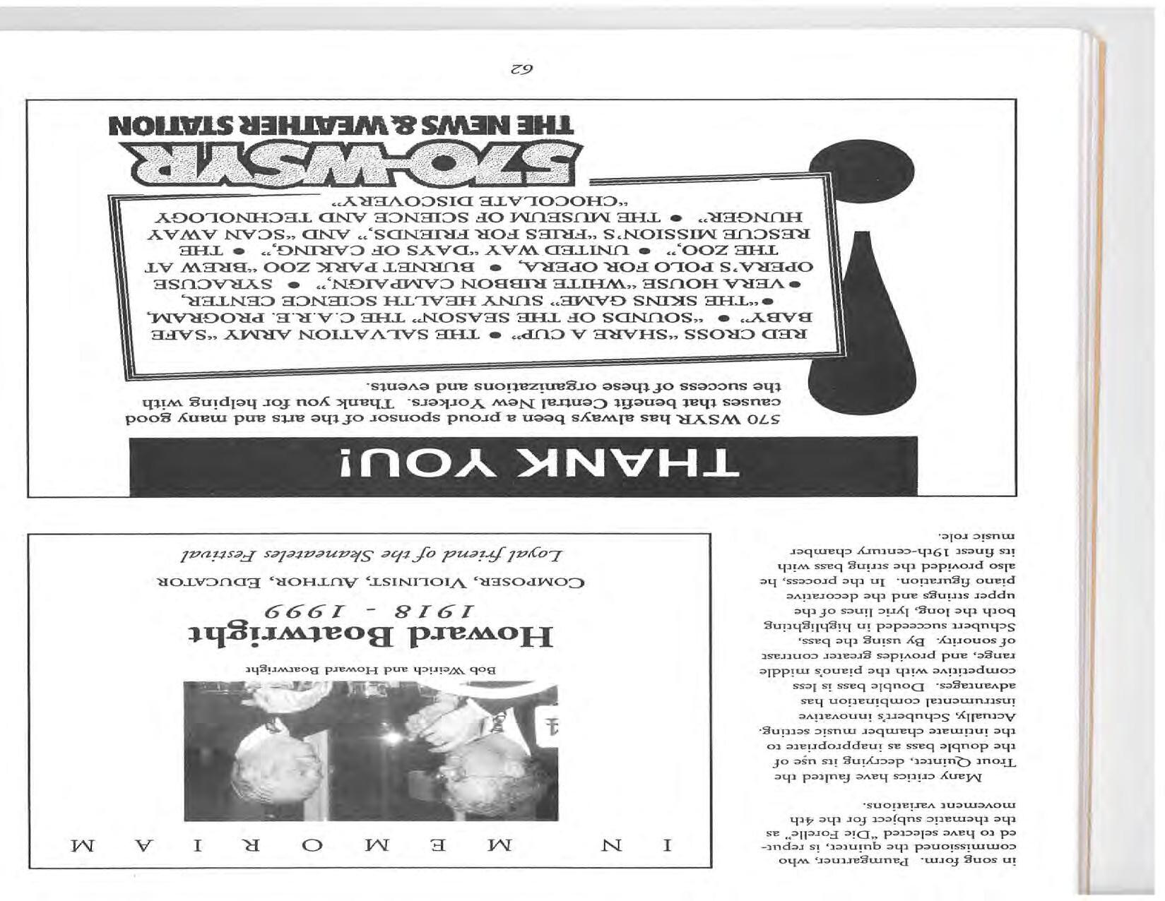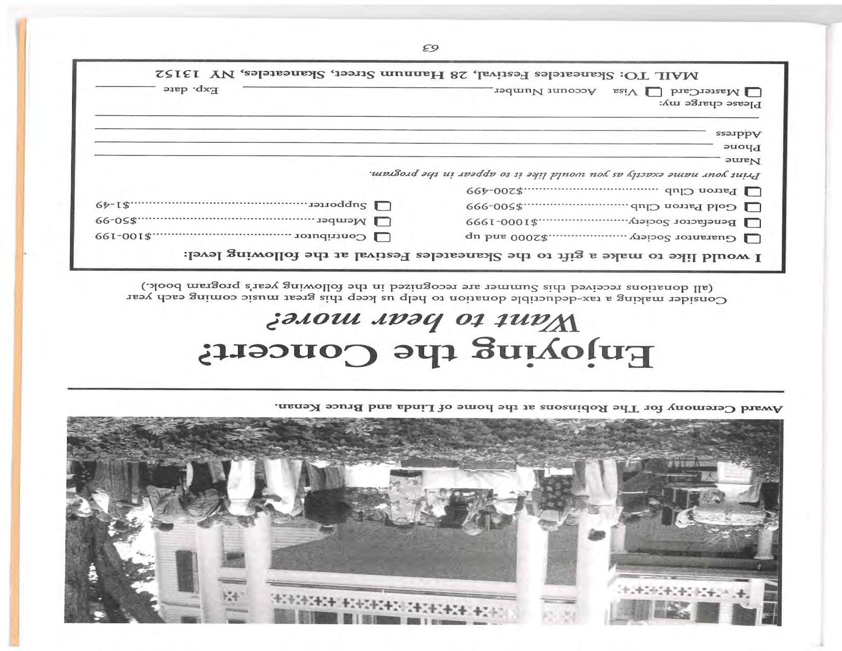 The Festival presents its first opera, Britten’s Noye’s Fludde, conducted by Grant Cooper. The Magellan String Quartet performs Ravel, Schoenberg’s Transfigured Night, and Strauss. Awadagin Pratt joins the Miro String Quartet for Dvořák’s Quintet; the Miro also plays Haydn and Bartók. Pratt solos in Mozart’s Piano Concerto No. 23 and conducts Beethoven’s Symphony No. 3. Hilary Hahn performs Beethoven’s Piano Trio, Brahms’ String Sextet, and Brahms’ Violin Sonata No. 2. In the final concert, with the composer present, Jeffrey Kahane conducts Hahn in the second-ever performance of Edgar Meyer’s Violin Concerto, shortly before she records the work.