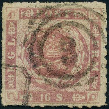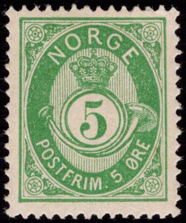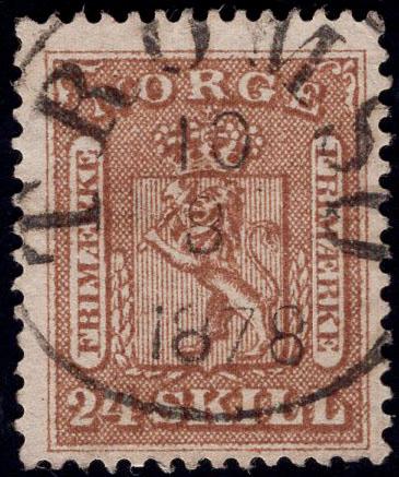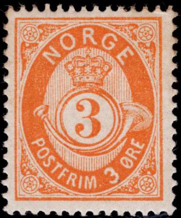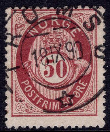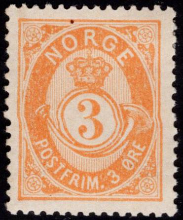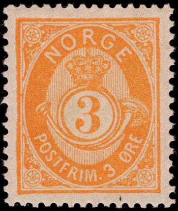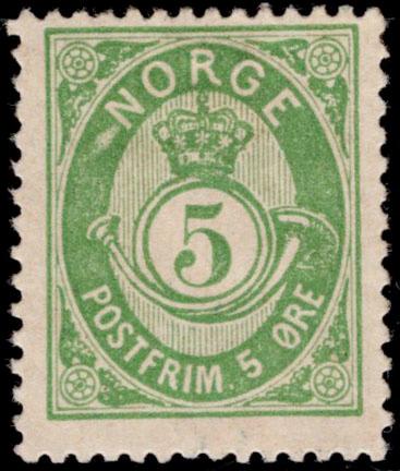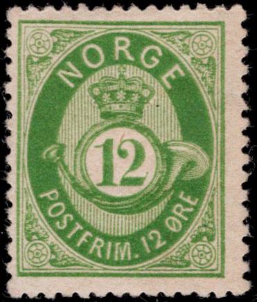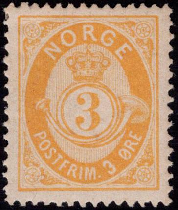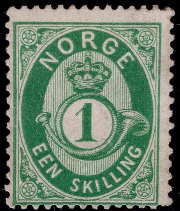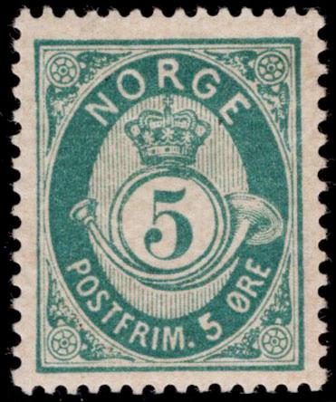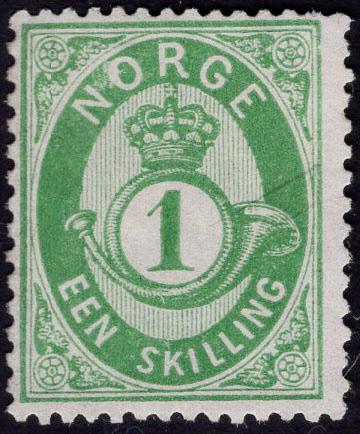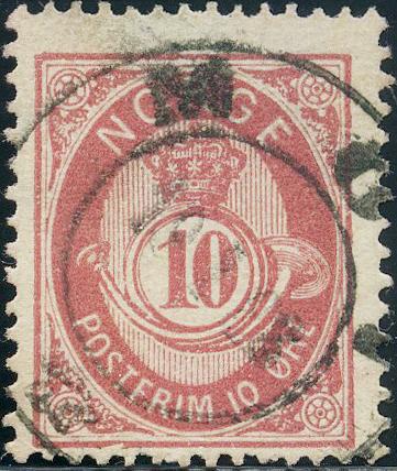 1369 o/* Albumark med posthornmerker og kroneprovisorier. Flott NK 44 med Grimstad 28/8 1884.