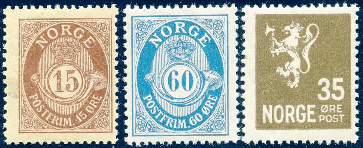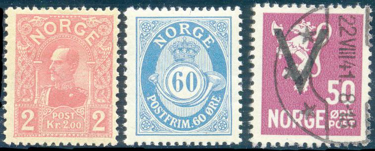 1406 o/* Eldre samling Norge til 1942. Tynt belagt med enkelte litt bedre merker. Medfølger noe massevare (har ligget urørt i 50 år) fra mellomkrigstiden, blant annet 700 røde 10-øres posthorn og noen 1000 løve dyptrykk.