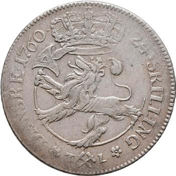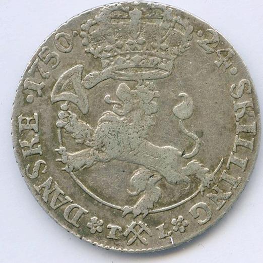 Frederik V (1746-1766) F 35 24 skilling 1750 i kvalitet 1. 750 36 24 skilling 1759 i kvalitet