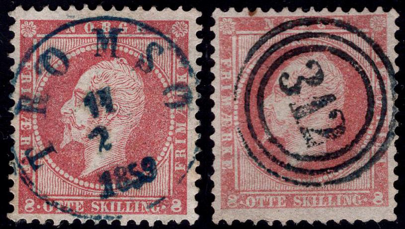 1000 1376 o To gamle utvalgshefter med merker fra 1856 til 1985. Noen merker er tatt ut, men her er flere bedre merker igjen - deriblant 15 skillingsmerker i ok kvalitet.