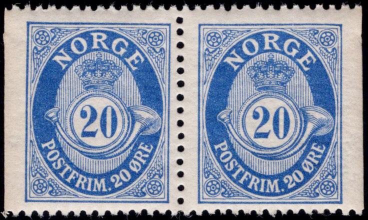 1435 o STOLPESKRIFT. 1, 5, 10 og 20 øre på 2 sider, flest 20 mm. Her er 44 enkle, 20 par og 3 firestriper.