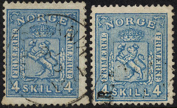NK 14 x og y. 4 skilling 4, både med tykt og tynt papir. Stemplet.