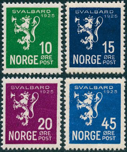Svalbardmerkene fra 1925. Postfrisk serie i meget pen/praktkvalitet