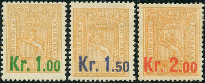 Kroneprovisorier 1905. Komplett ubrukt serie, plate I. Begrenset beholdning.