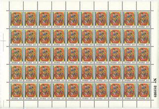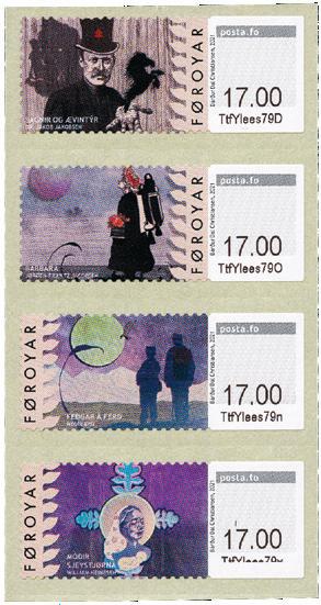 18 forskjellige postkort med årets frimerker, vesentlig 1980-2000. Litt variasjon fra pakke til pakke. Utgitt av Postverket.