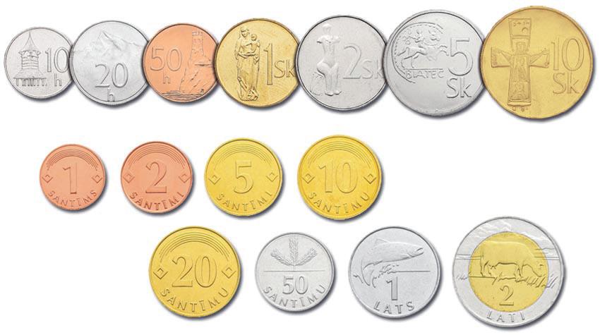 De siste myntrekkene før euro ble innført. Slovakia og Latvia med hhv. 7 og 8 mynter.