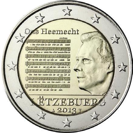 2 euro 2013 i kv. UNC. Nasjonalsangen.