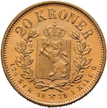 20 kroner 1878 gull. Kv. 0/01. OBS! Kun 1 stk tilgjenglig!