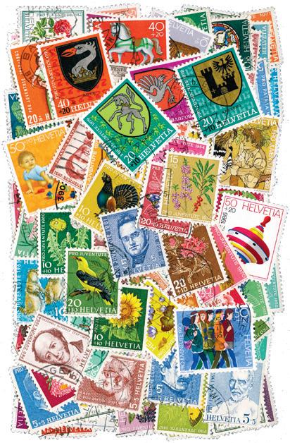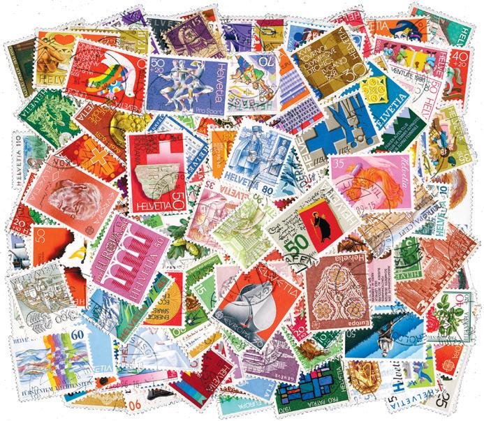 Pakke med 500 forskjellige frimerker fra Sveits. Gamle og nyere merker, stemplet. I tillegg får du en pakke med 100 forskjellige merker med tilleggsverdi, også disse stemplet. Litt overlapp mellom pakkene kan nok forekomme. 325,-