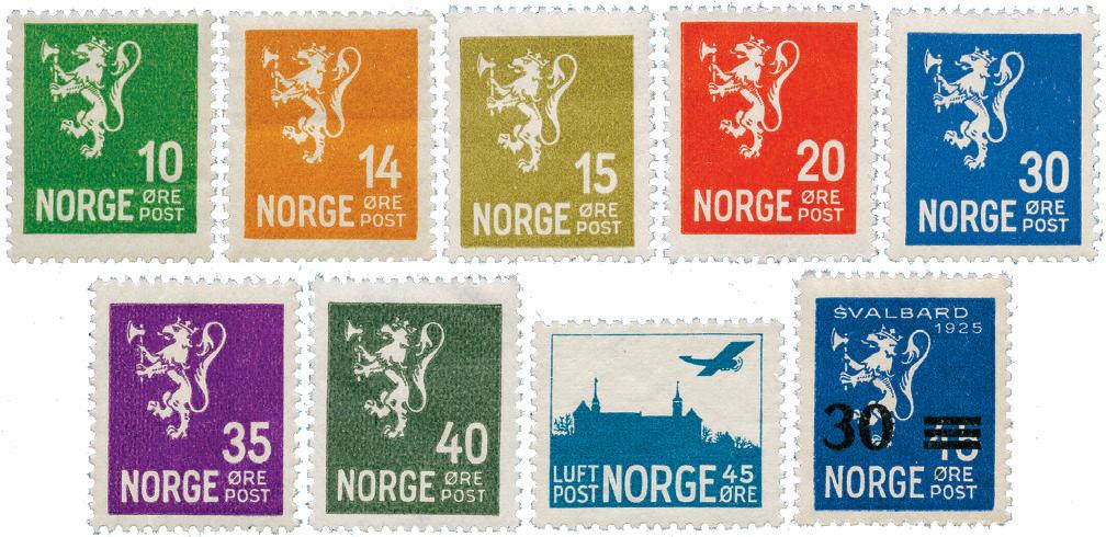 Denne måneden tilbyr vi 7 ulike merker fra den andre serien med løvemerker, utgitt mellom 1926 og 1934. Du får 10, 14 og 15 øre, 20 øre rød, 30 og 35 øre, samt 40 øre grå. I tillegg får du også 45 øre luftpost fra 1927 med tydelig ramme, samt provisorie 30 på 45 øre Svalbardmerke. Alle postfriske.