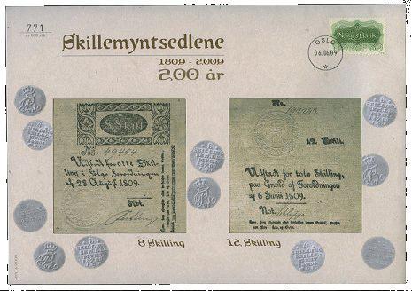 Bergens Mynt og Seddelforretnings myntbrev nr. 64. Skillemyntsedlene 200 år. Normalpris 195,-.