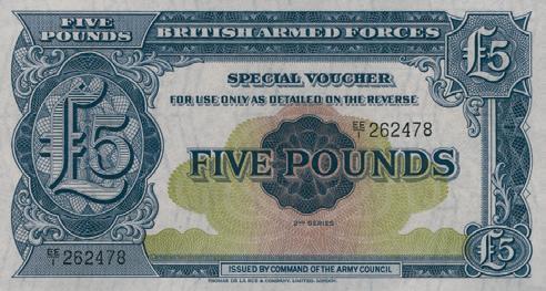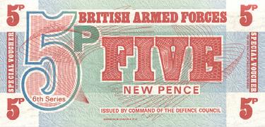 Mellom 1946 og 1979 utstedte Storbritannias væpnede styrker sin egen valuta. Totalt ble det utstedt seks ulike serier av denne militære valutaen til tropper stasjonert i utlandet. På forsiden og baksiden kan man se såkalte guilloché-mønstre i tillegg til den respektive valør, som er ment å gjøre det vanskeligere for forfalskere å etterligne denne seddelen. På baksiden av pengesedlene ble det lagt til en ekstra bruksanvisning. Alle pengesedler ble til slutt trukket ut av sirkulasjon i 1979. I denne pakken får du 5, 10 og 50 New Pence og 1 og 5 Punds, utgitt i perioden 1958-1972. Et stykke numismatisk militærhistorie. 195,-