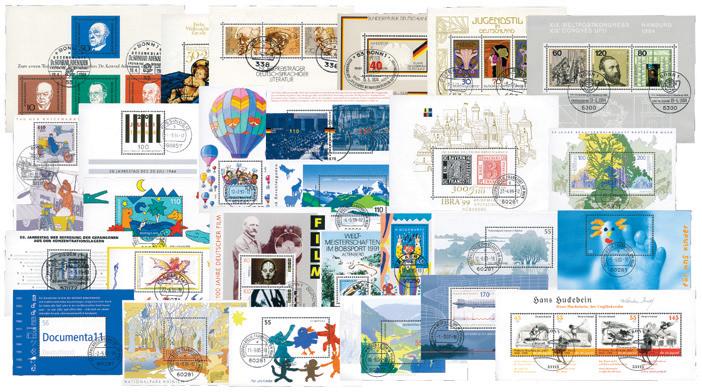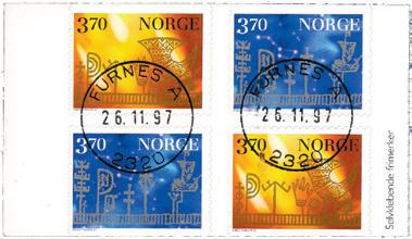7 ulike 4-blokker fra frimerkehefter i perioden 1997 til 2003. Alle pent stemplet. NK 1316-17, 1376-77, 1380-81, 1399-1400, 1410-11, 1468 og 1499.