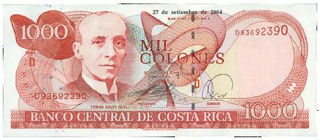 1000 colones 2004, kval. UNC - (P-264e) (tellemerke). Tomás Soley Guell til venstre. Bak: National Insurance Institute.