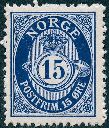 15 øre Posthorn 1920/29, postfrisk. Flisetagget. Under 1/2 pris!