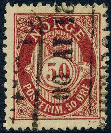 Serie Oscar kronemerker 1878 med småfeil. Vesentlig pakkepoststempler.