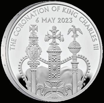 5 pound 2023 i kv. proof. Utgitt i forbindelse med kroningen av Kong Charles III. Opplag: 16 860.