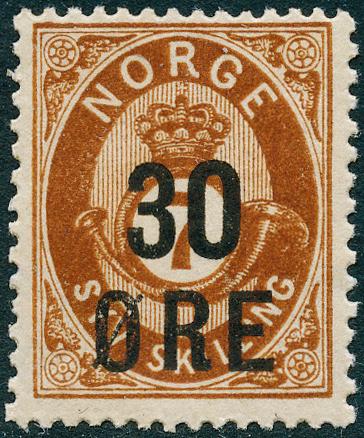 30 øre på 7 skilling provisorie 1906. Ubrukt merke.