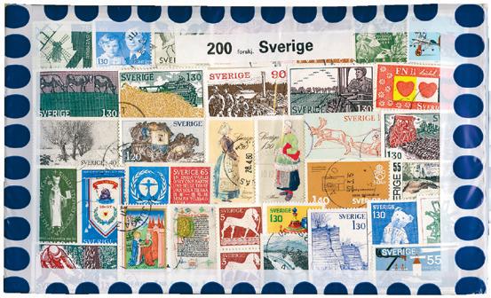 Vi har fått inn et parti med 2000 forskjellige frimerker fra Sverige. Disse er fordelt i to pakker med 1000 forskjellige i hver. Første pakke får du denne måneden, de siste 1000 blir tilbudt neste måned. Ordinærpris for 2000 forskjellige er kr 1800,-. Stemplede merker i normalkvalitet.