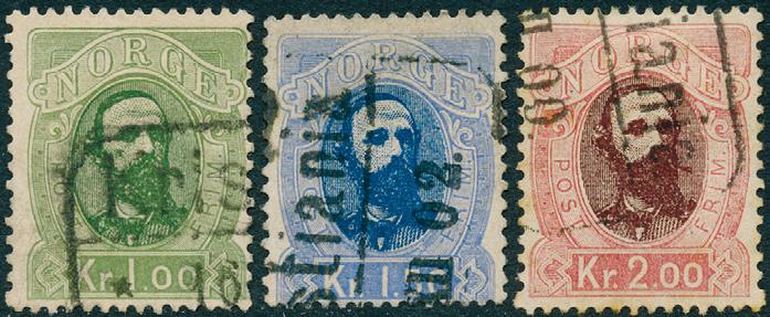25, 30 og 35 øre fintagget Knudsen 1898/1908. Stemplet.