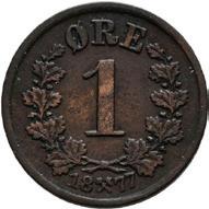 1 øre 1877 i kv. god 1. NB! Eksempelbilde.