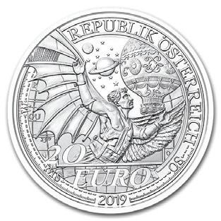 20 euro sølv 2019, proof. Reaching for the Sky, The dream of flight. Lilienthal, kjent som den “flyvende mannen”, var den første personen til å gjøre vellykkede flyvninger med glider. I 1893 fløy han en avstand på 250 meter, en rekord som forble ubeseiret til han døde i en glideflyulykke i august 1896. En sann pioner, Lilienthal påvirket positivt mening om praktiske flyvemaskiner. 20 euro 925 sølv. Vekt: 22,42 g. Diam: 34 mm. Mynten leveres i original eske med sertifikat fra Münze Østerreich.