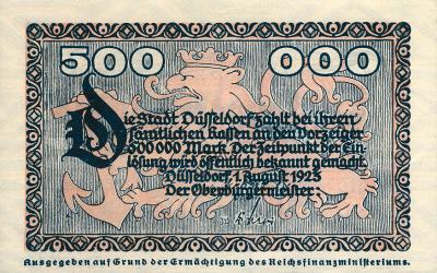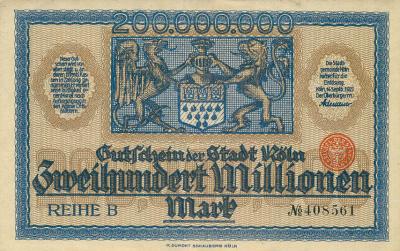 4 nødsedler fra 1923, utgit i Tyskland (Weimar Republic).