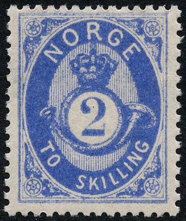 2 skilling posthorn, ultramarin. Postfrisk.