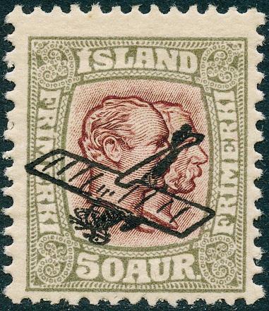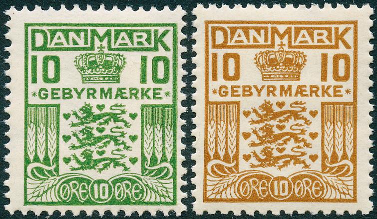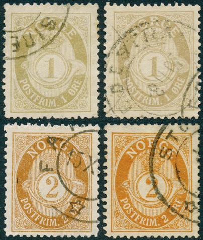 1 og 2 øre med både liggende og stående vannmerke. Stemplet.