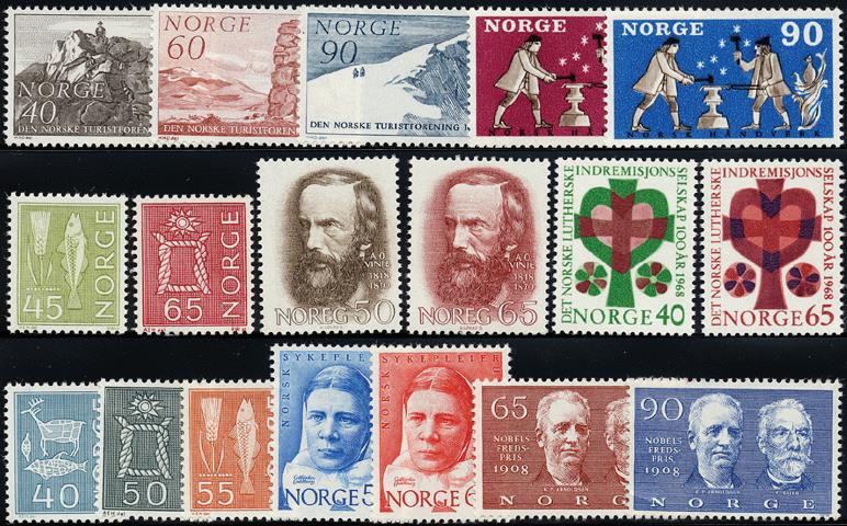 5 “turist-hefter” med gamle norske byggverk som tema hhv. Steinvikholm festning, Sjømennenes minnehall i Stavern, Tofte på Dovre, Selje kloster og Breilandsloftet. I hvert hefte er det innsatt postfriske 4-blokker med hhv. NK 788, 903, 904, 907 og 924. Informativ tekst om bygningene på baksiden. 275,-