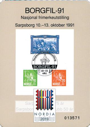 To provisoriske minneblokker, av to tidligere utgitte minneblokker. MB 22 til Nordia 1989 nå påført logoen til Nordia 2019. Tilsvarende minneblokken til Borgfil-91. Opplag kun 700 stk av hver. Tidligere tilbudspris kr 150,-.