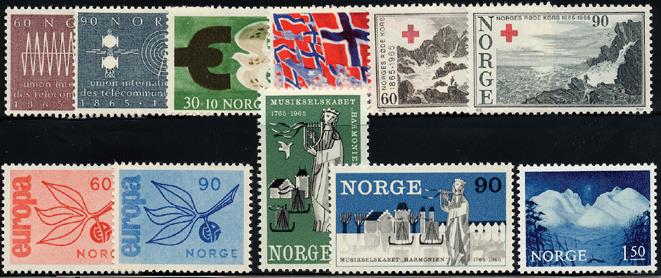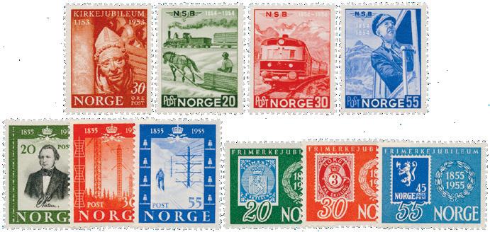 De 10 første frimerkeheftene, postfrisk. Inkl. 2 kr automathefte. Heftenr. B1Ø, A1-A9. Inneholder AFA nr. 2 + 5, 76-77, 100-05, 119-23, 215-16, 229-30, 24041, 254-55, 262-63 og 275-76.