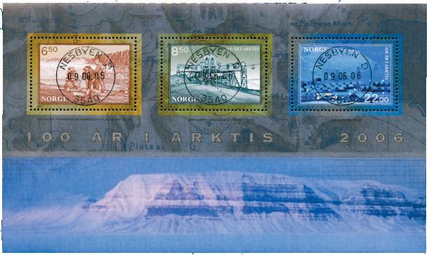 3 miniark med vakre stempler Nesbyen. NK 1613-15/BL30 100 år i arktis, NK 1626-27/BL31 H. M. Kongens garde 150 år og NK 1634-36/BL32 Motorsport vinterrally.