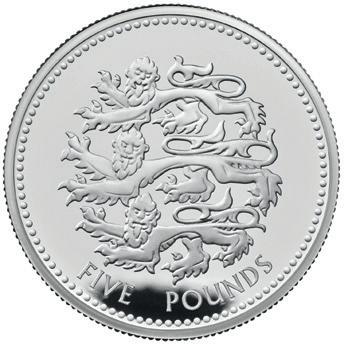 5 pound 2023 sølv i kv. proof. The Pride of England - Three Lions silver.