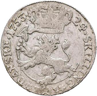 12 Frederik III. 2 skilling 1653, Christiania, kvalitet 1/1+. NMD 212. Hede 70B. Schou 114.