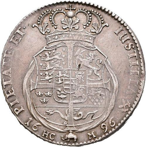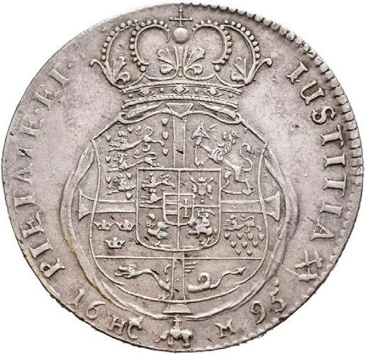 21 Frederik III. 2 mark 1657, Christiania, kvalitet 1, loddespor revers. NMD 157. Hede 67B. Schou 41.